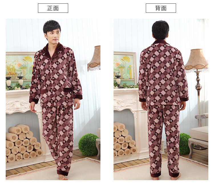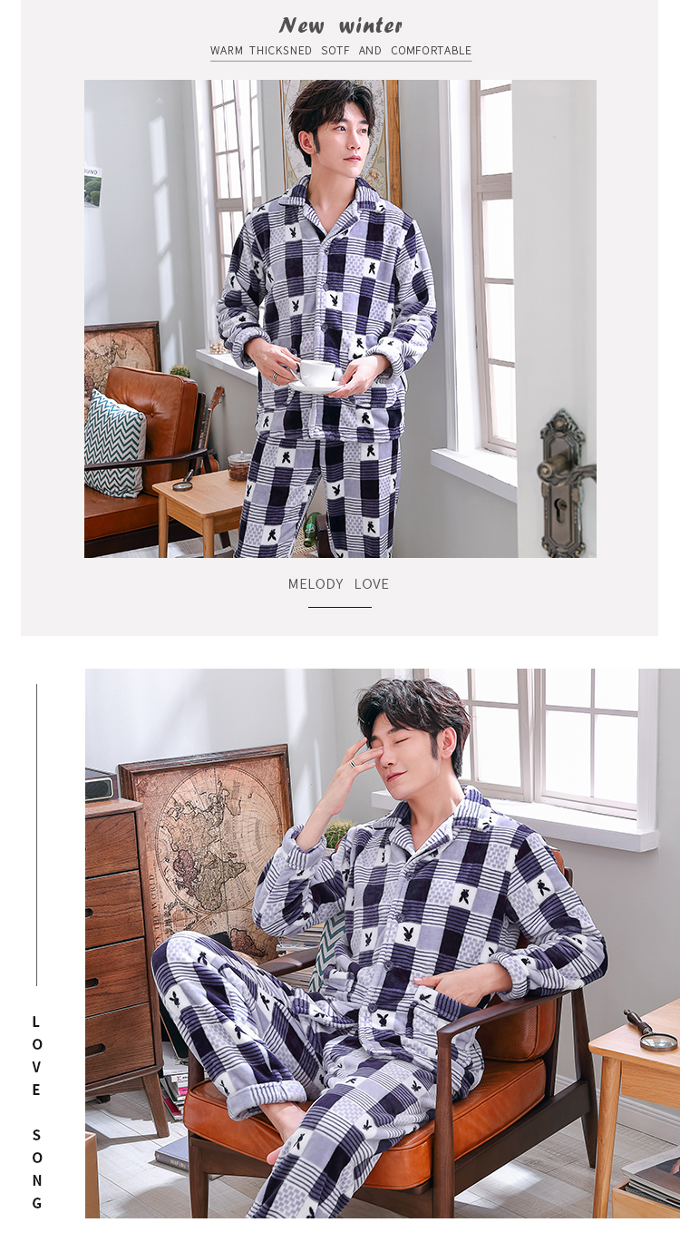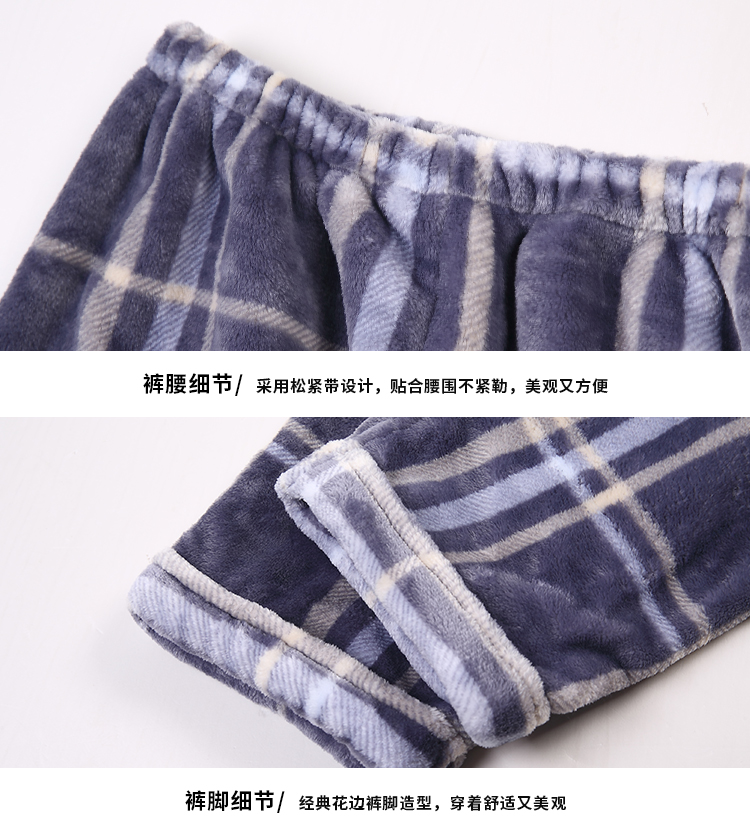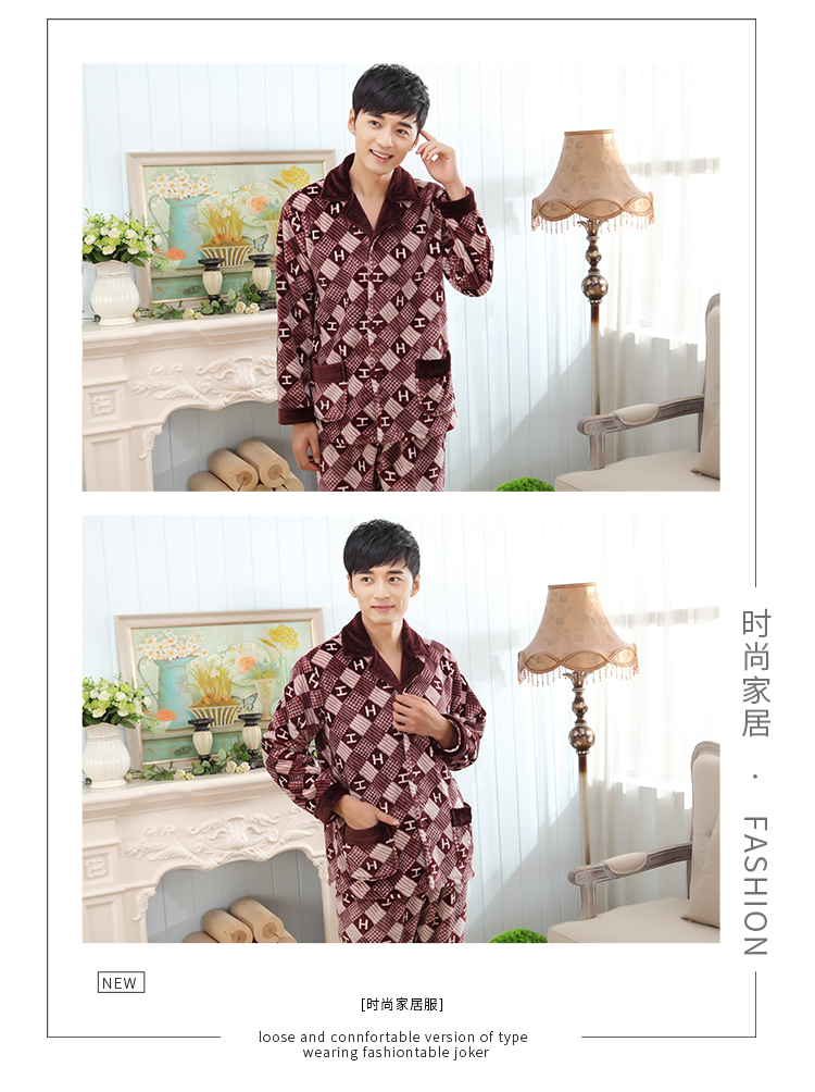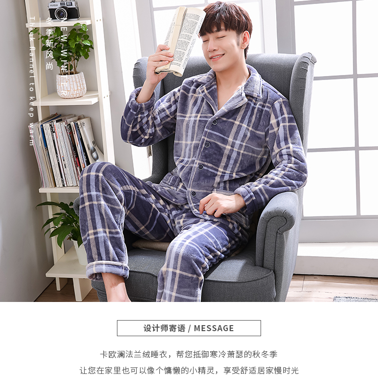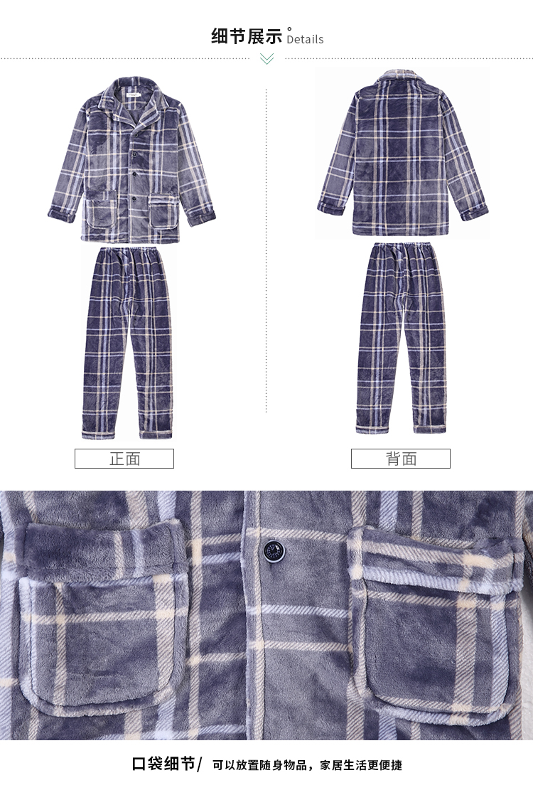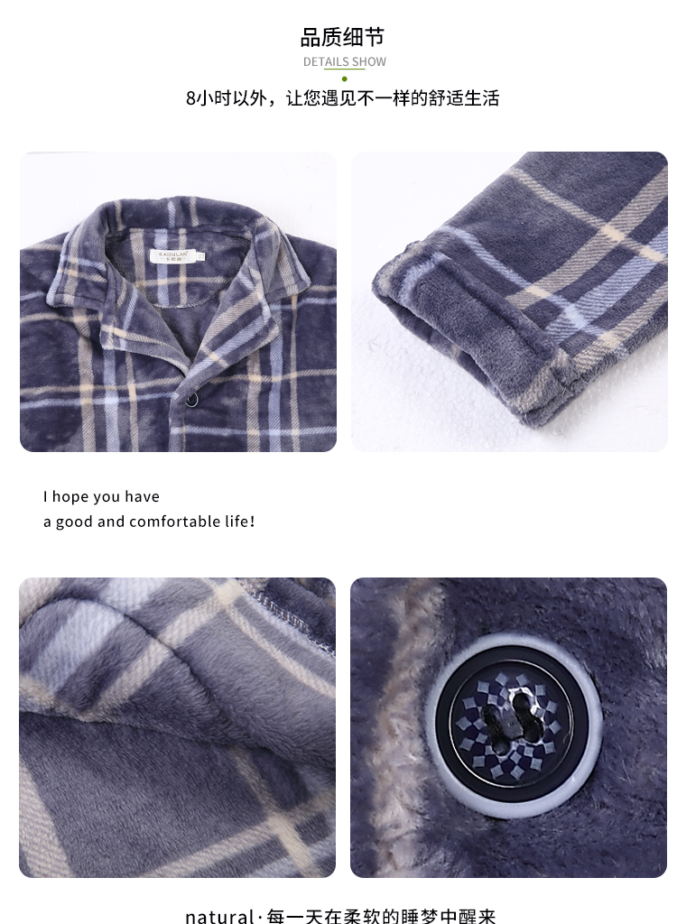 卡欧澜中老年珊瑚绒睡衣男士秋冬季大码加厚加绒法兰绒家居服套装