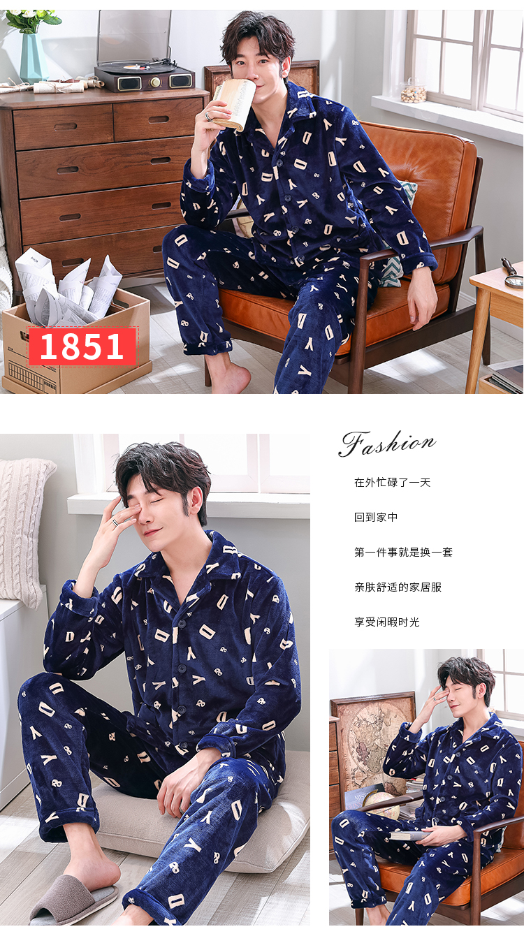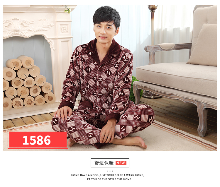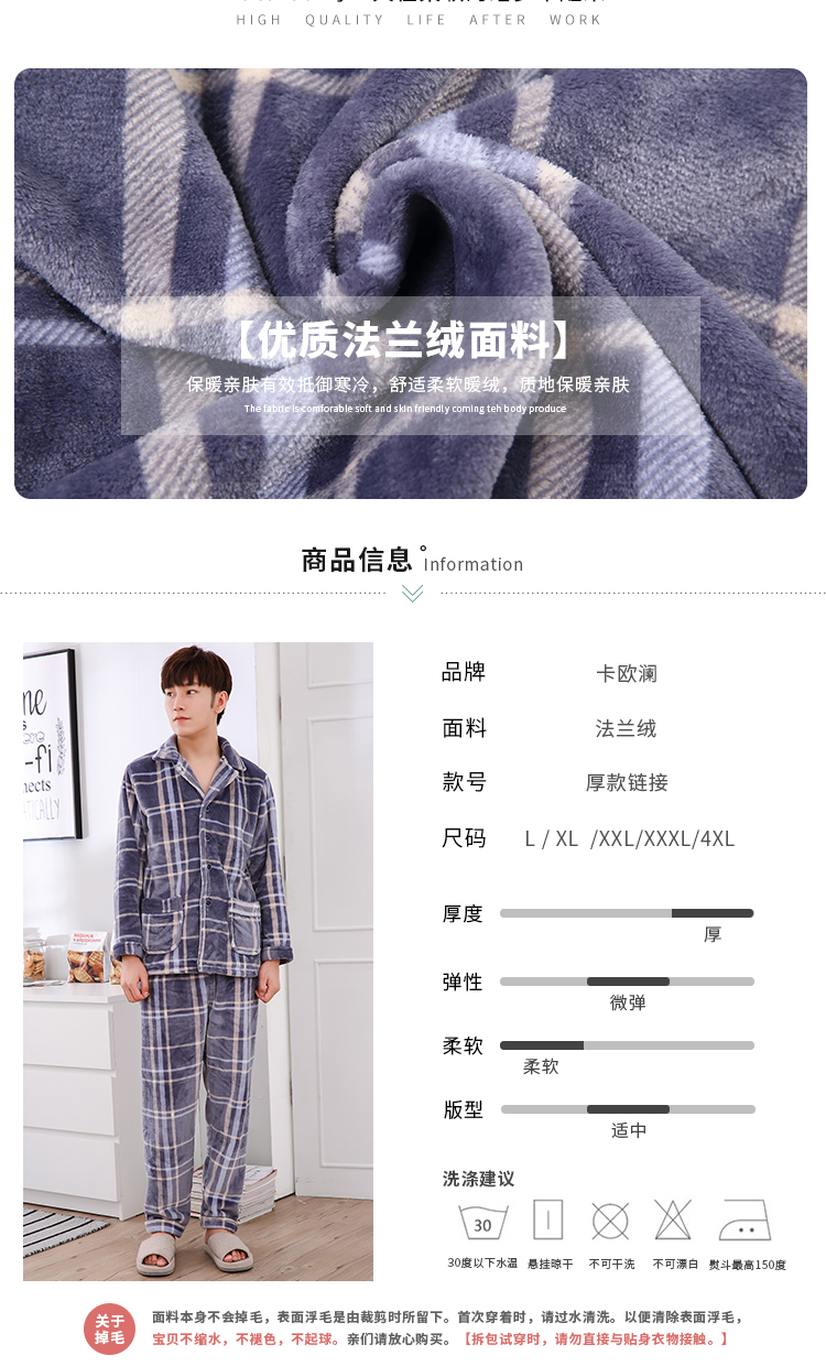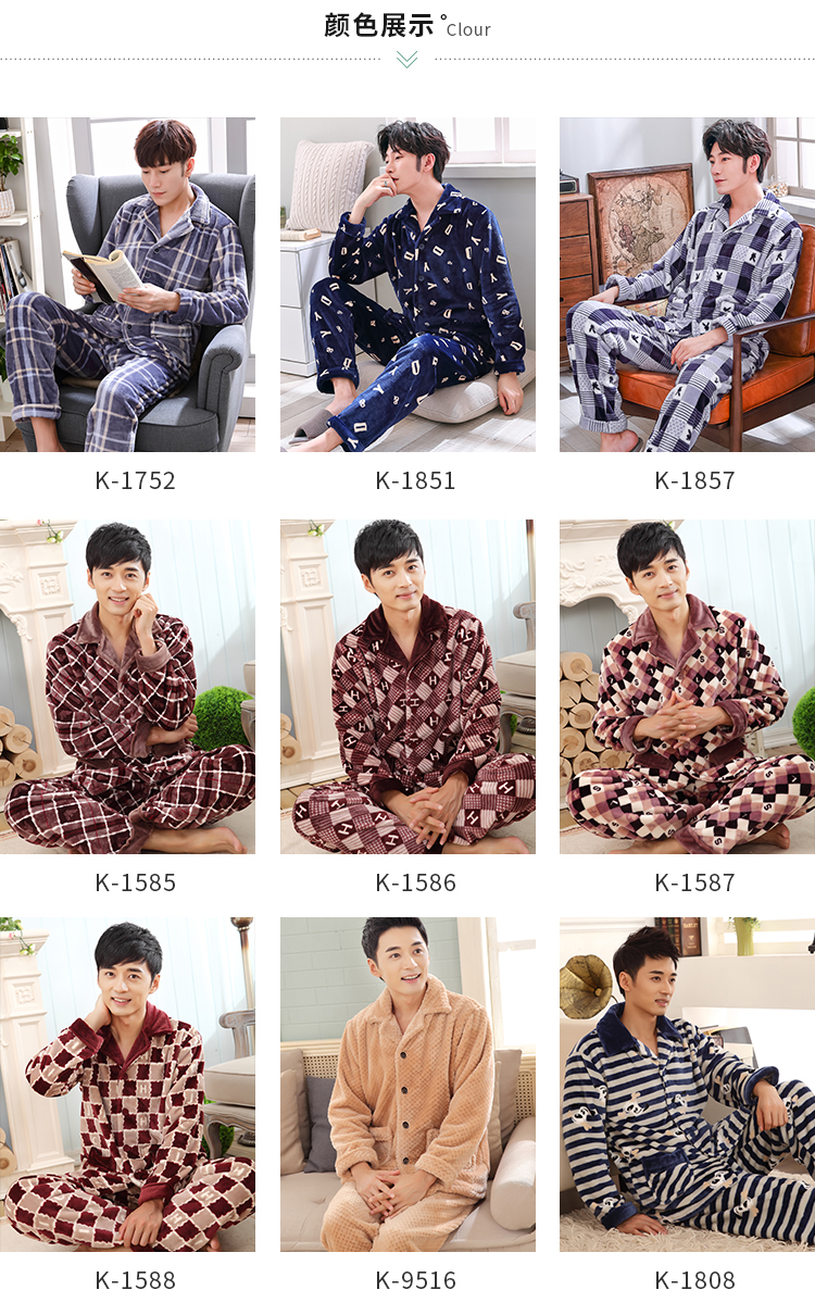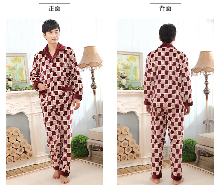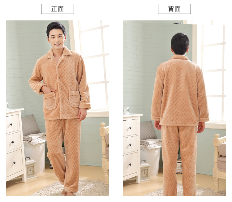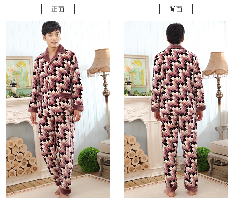 卡欧澜中老年珊瑚绒睡衣男士秋冬季大码加厚加绒法兰绒家居服套装