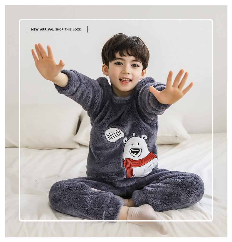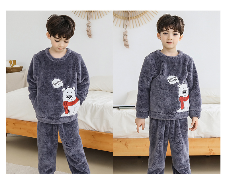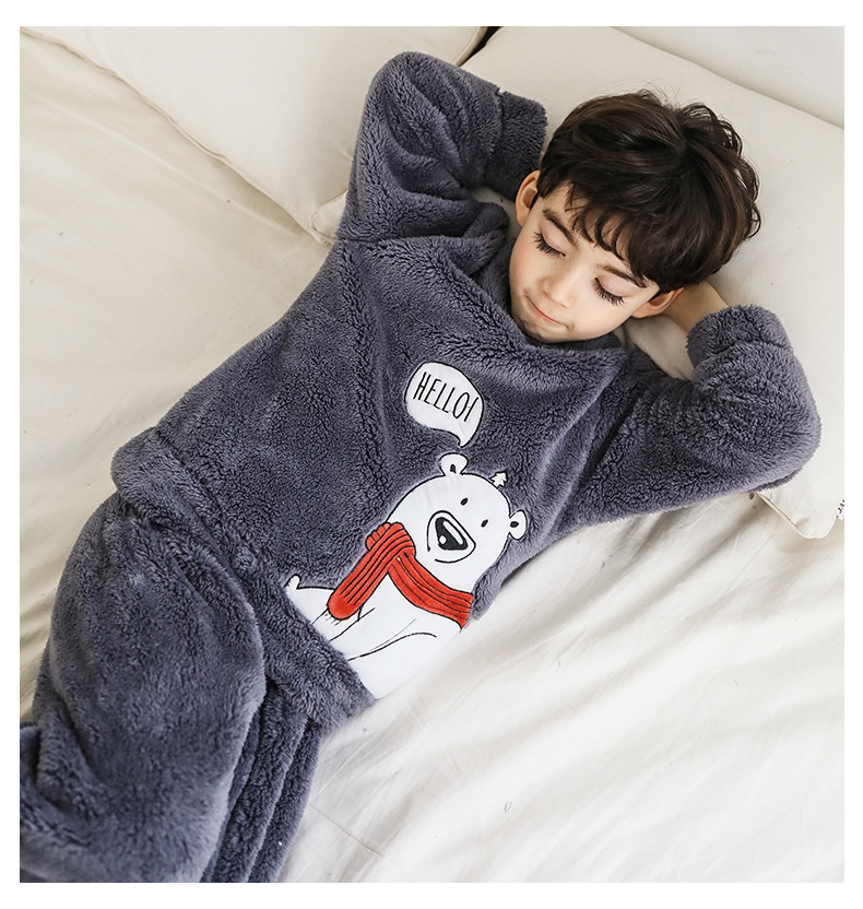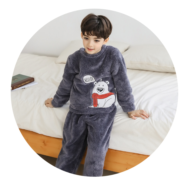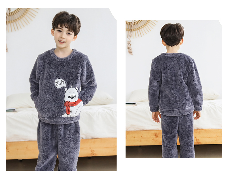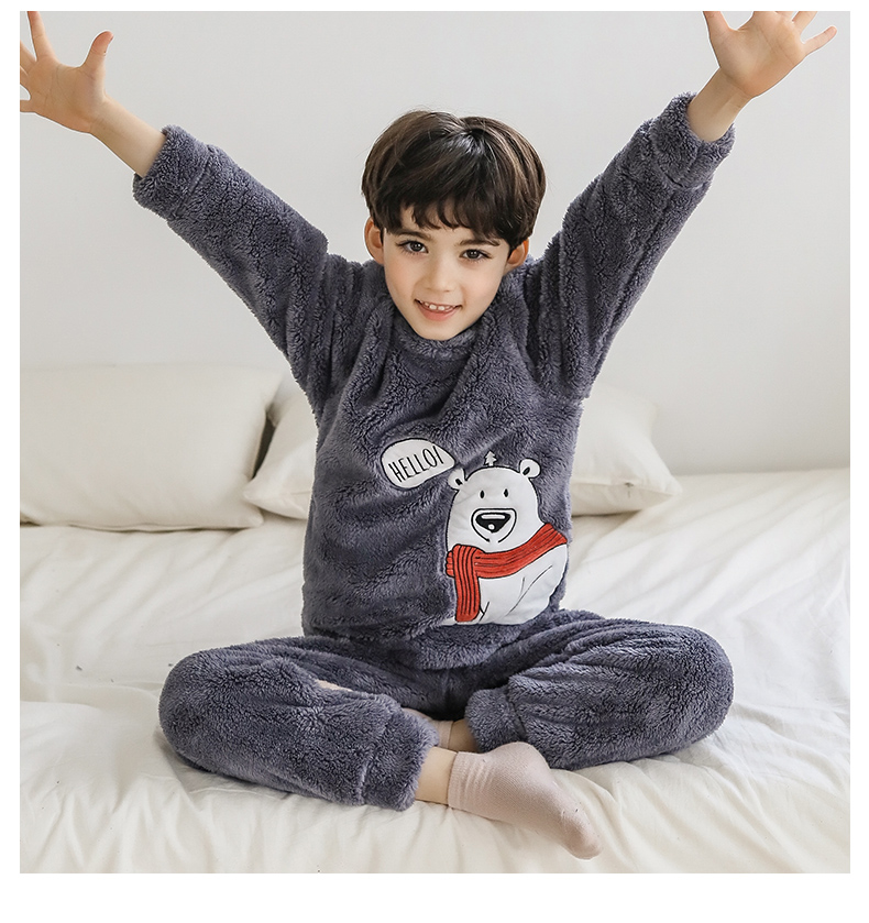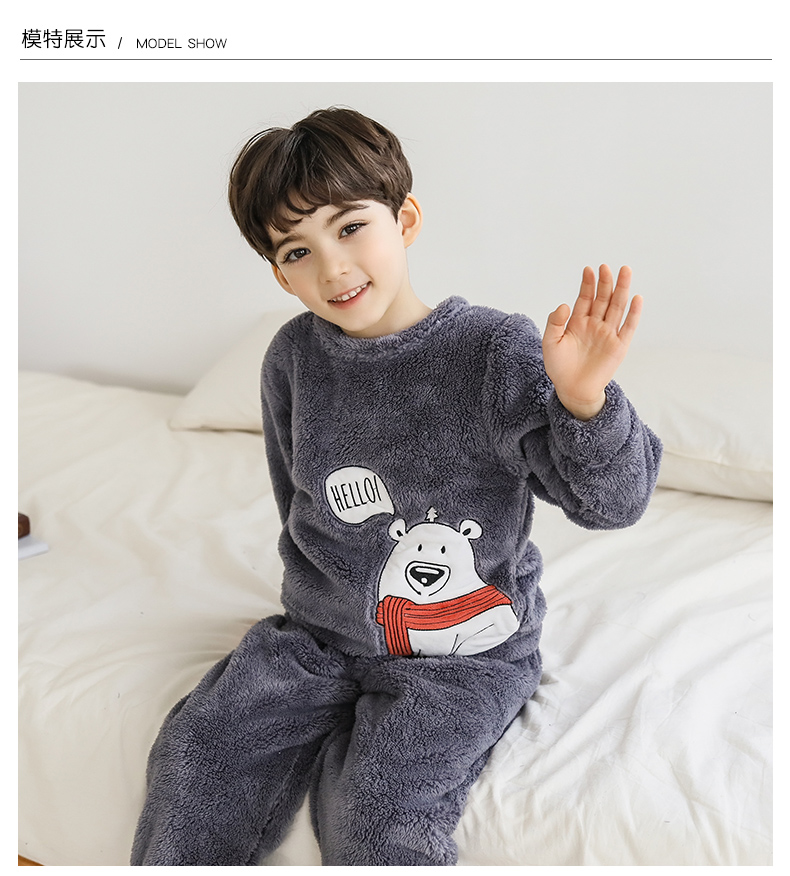 儿童睡衣秋冬季加厚款男童珊瑚绒法兰绒男孩中大童宝宝家居服套装