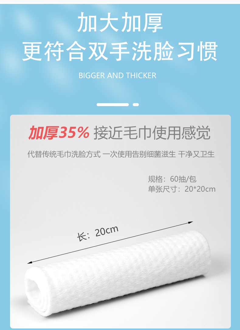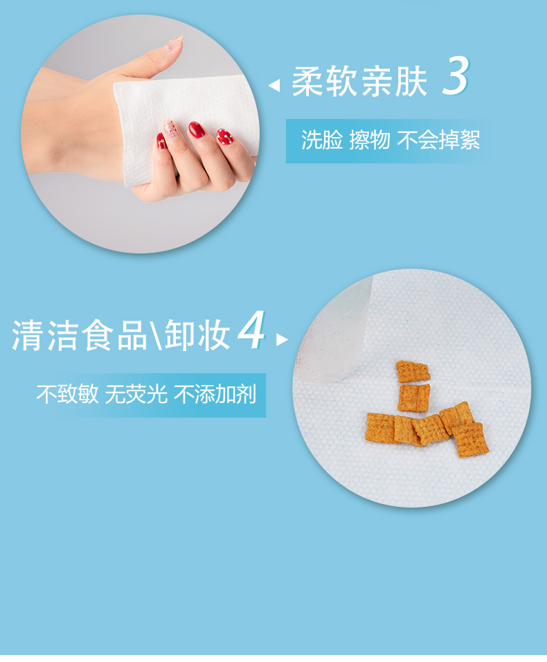 【纯棉加厚/80抽】采用优质纯天然长绒棉,柔软舒适,透气绵柔,加厚型不易起球掉絮,塑模防尘,安全卫生,一次性纯棉洁面巾洗洗更经济,使用舒适,安全天然。