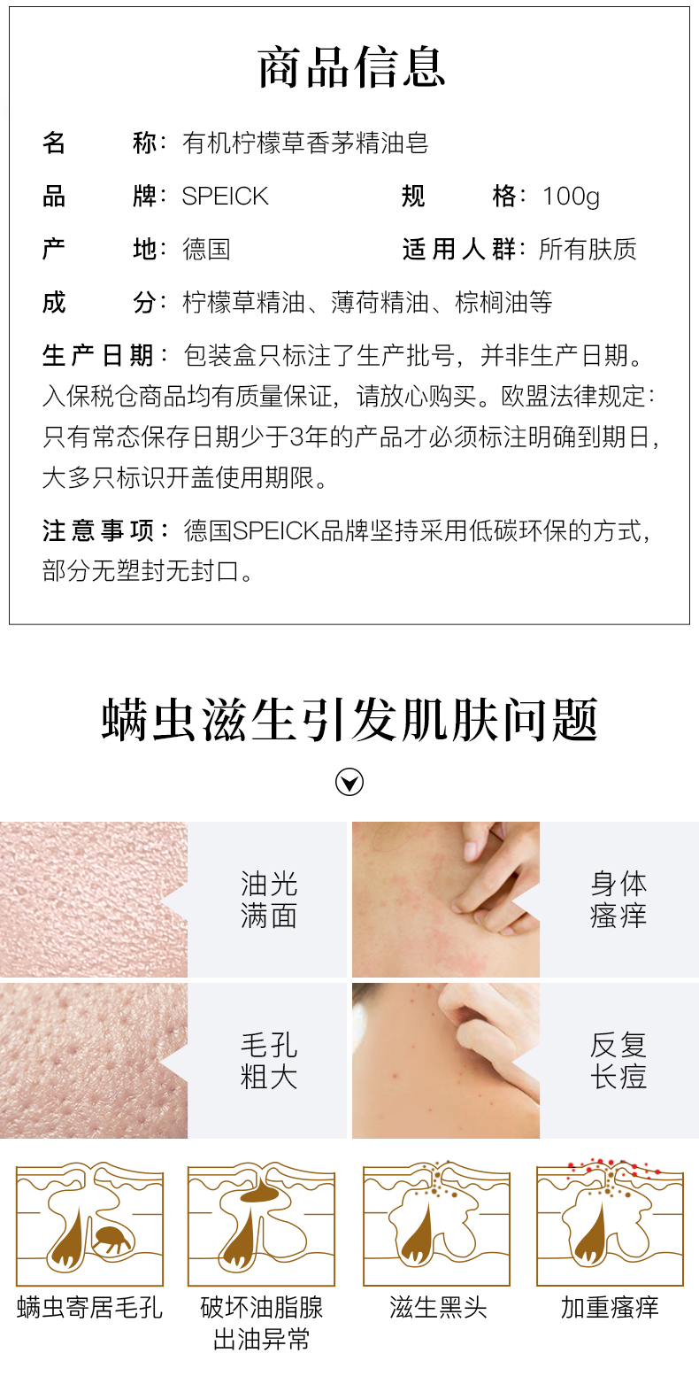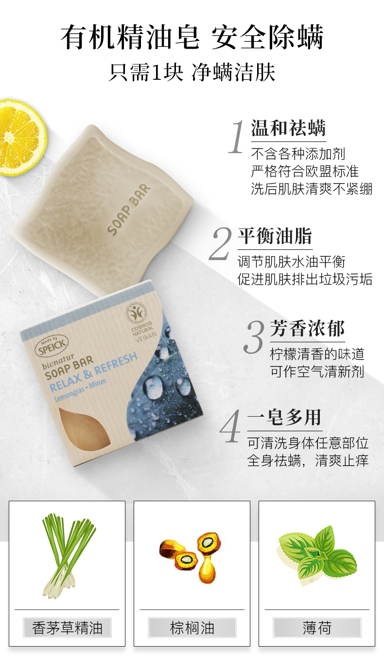 德国Speick天然香茅除螨虫面部防螨后背祛痘男女洗脸痘痘精油香皂