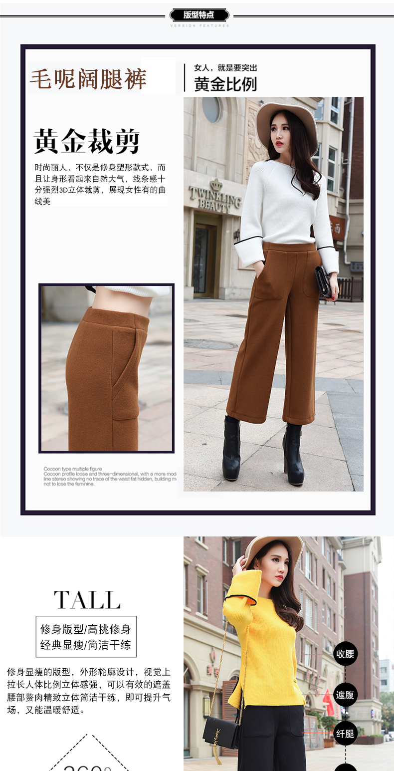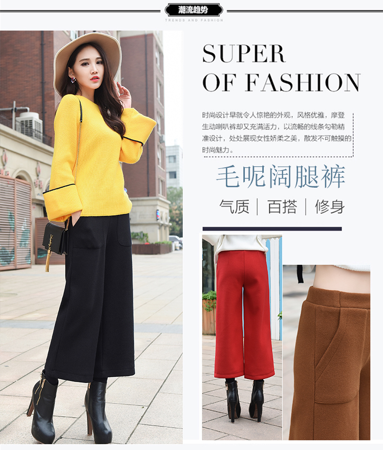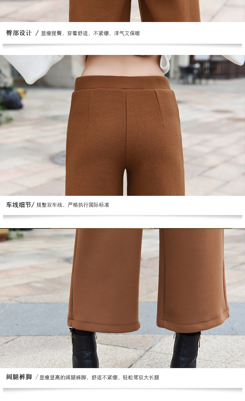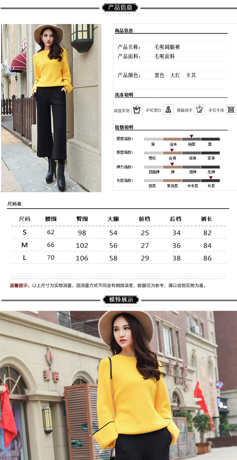 慵懒风高腰毛呢阔腿裤女2019秋冬新款休闲直筒裤显瘦宽松喇叭裤子