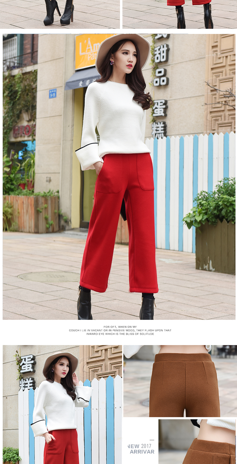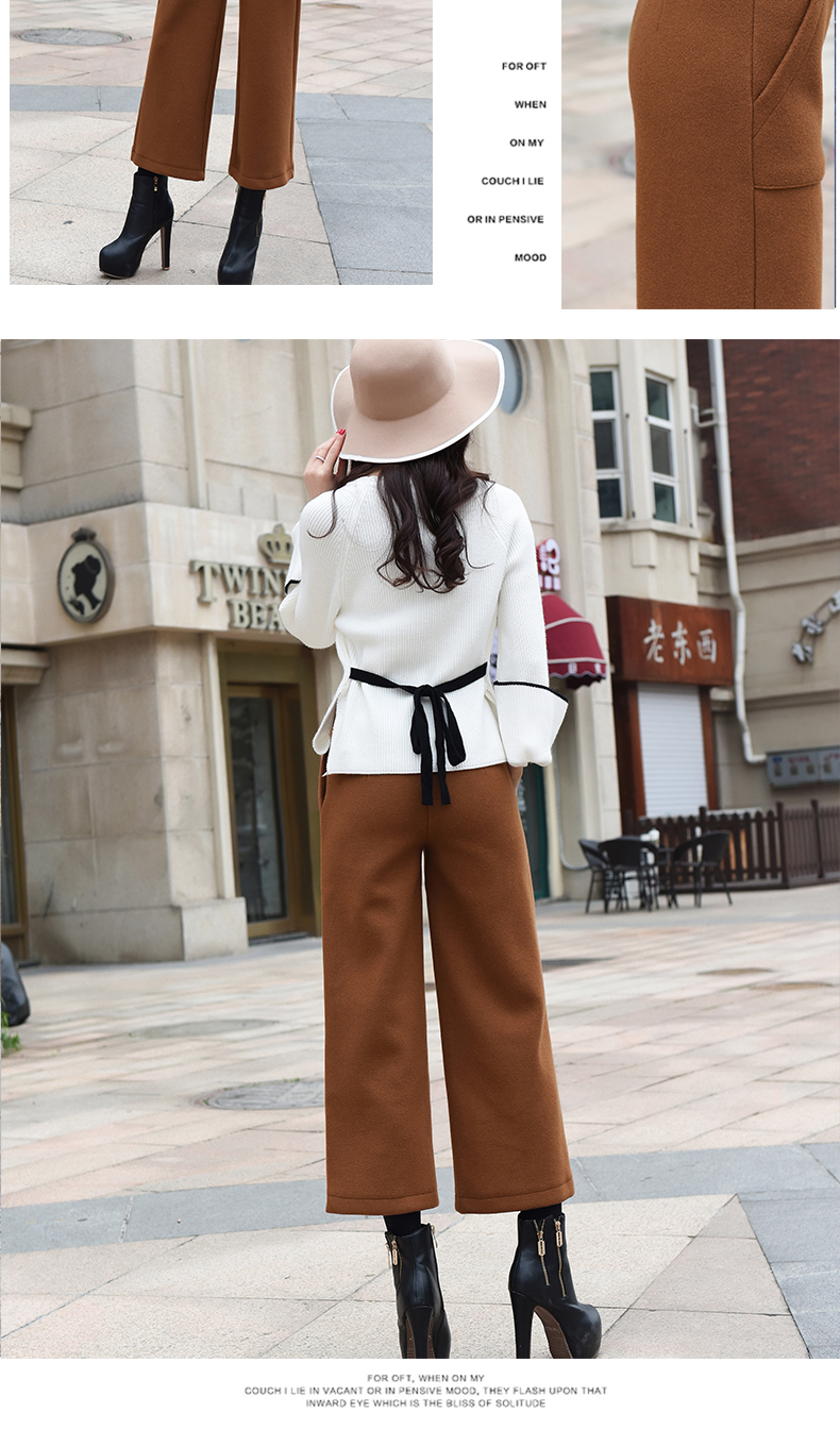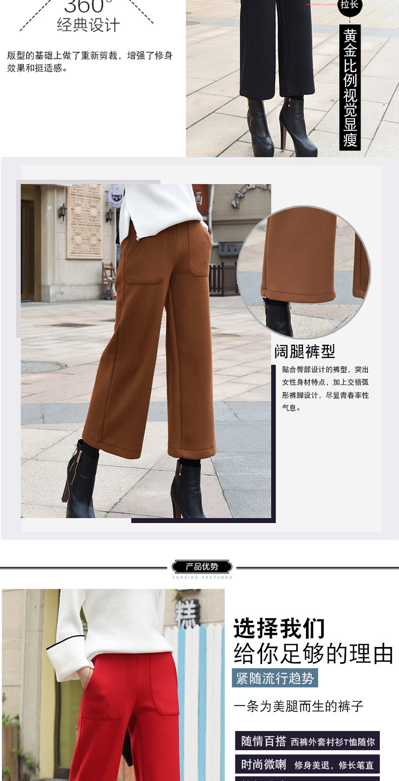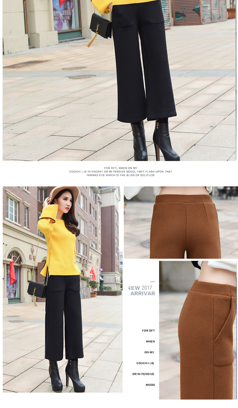 慵懒风高腰毛呢阔腿裤女2019秋冬新款休闲直筒裤显瘦宽松喇叭裤子