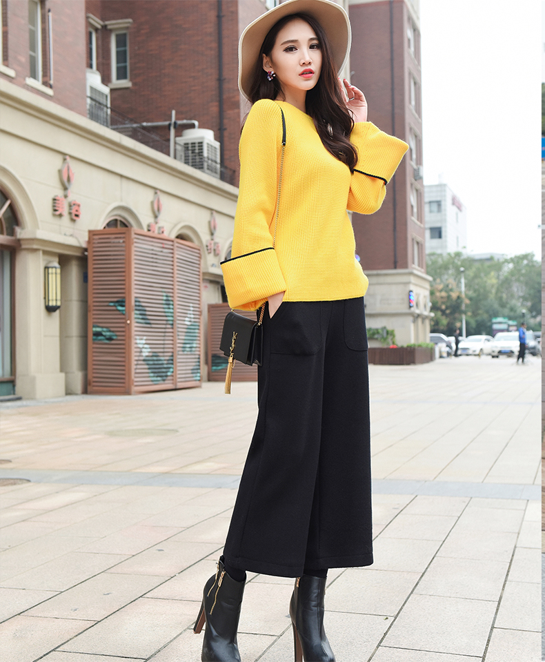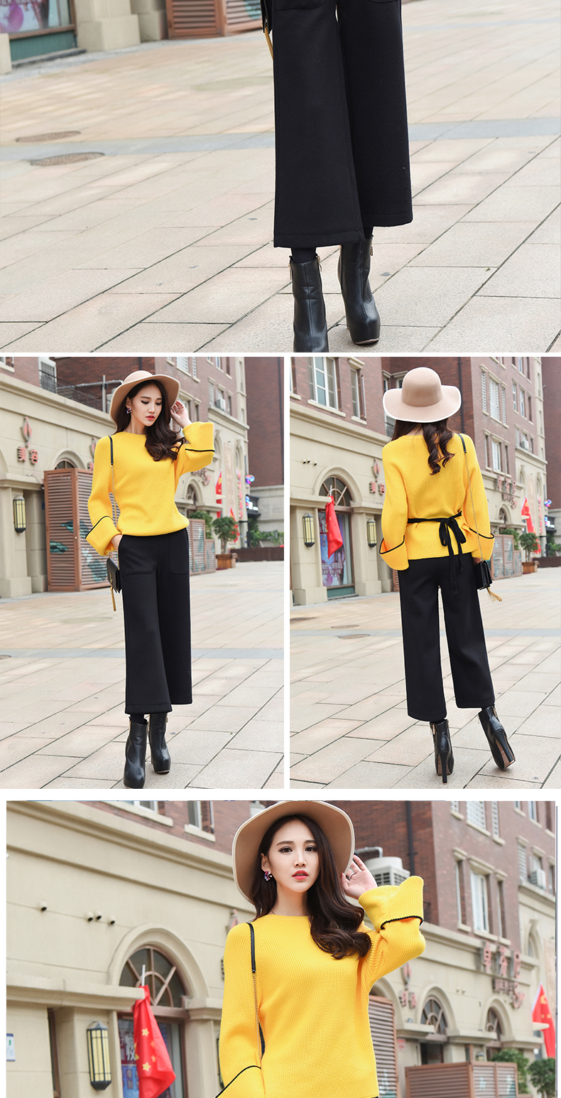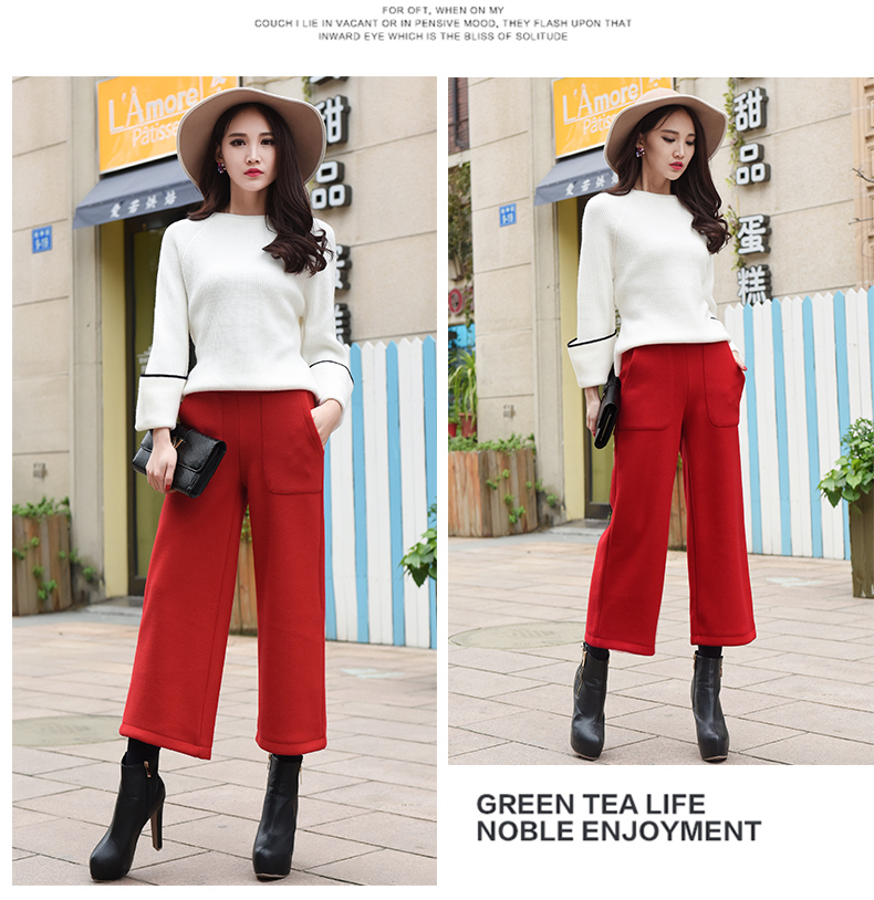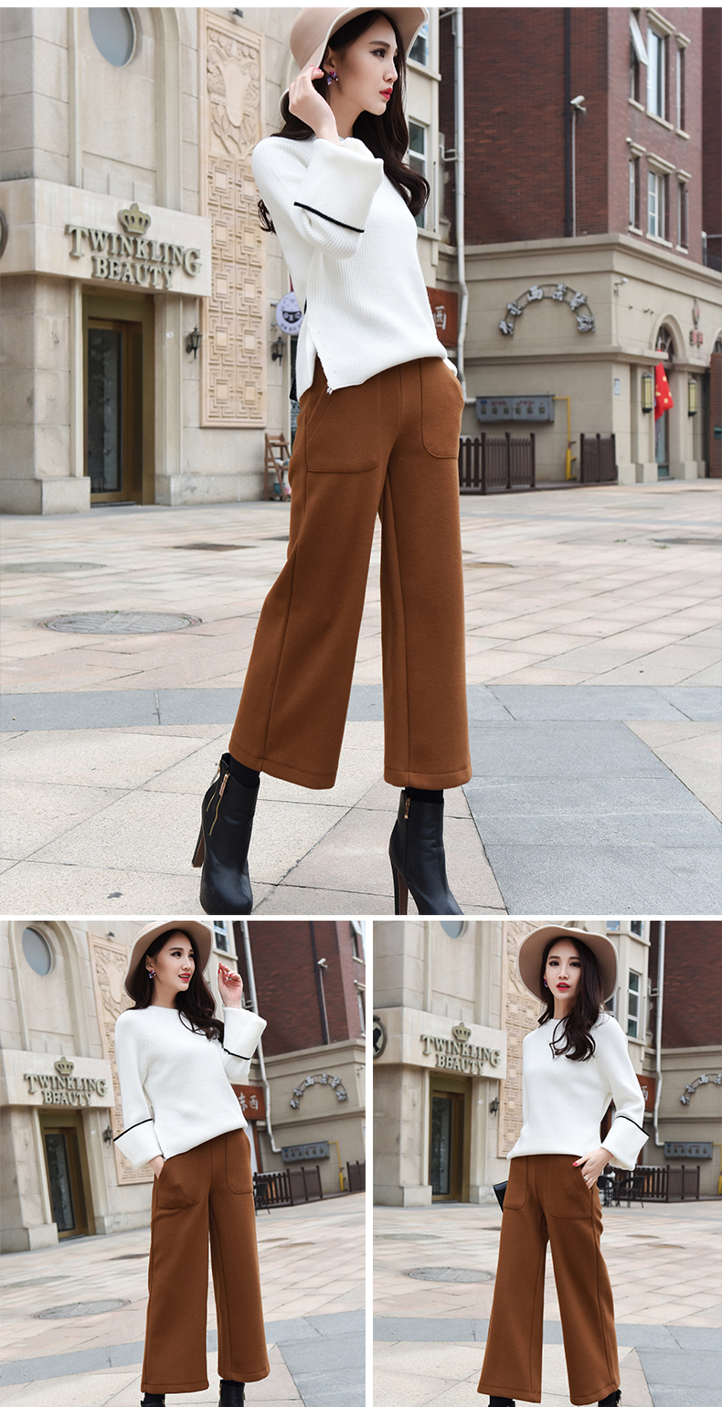 慵懒风高腰毛呢阔腿裤女2019秋冬新款休闲直筒裤显瘦宽松喇叭裤子