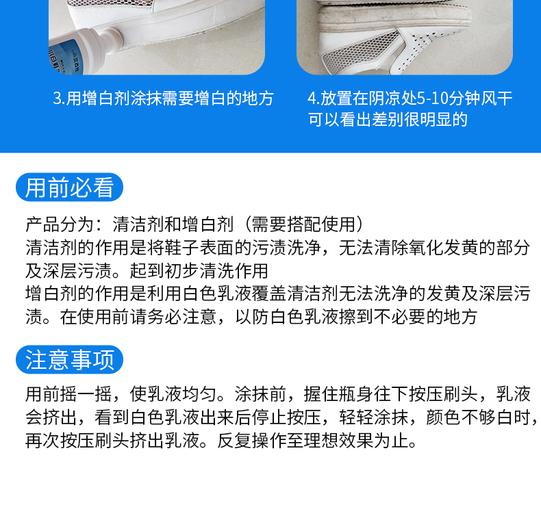小白洗鞋神器清洗剂白鞋一擦白清洁去污去黄增白擦鞋刷鞋专用洗白