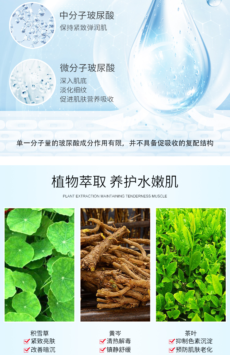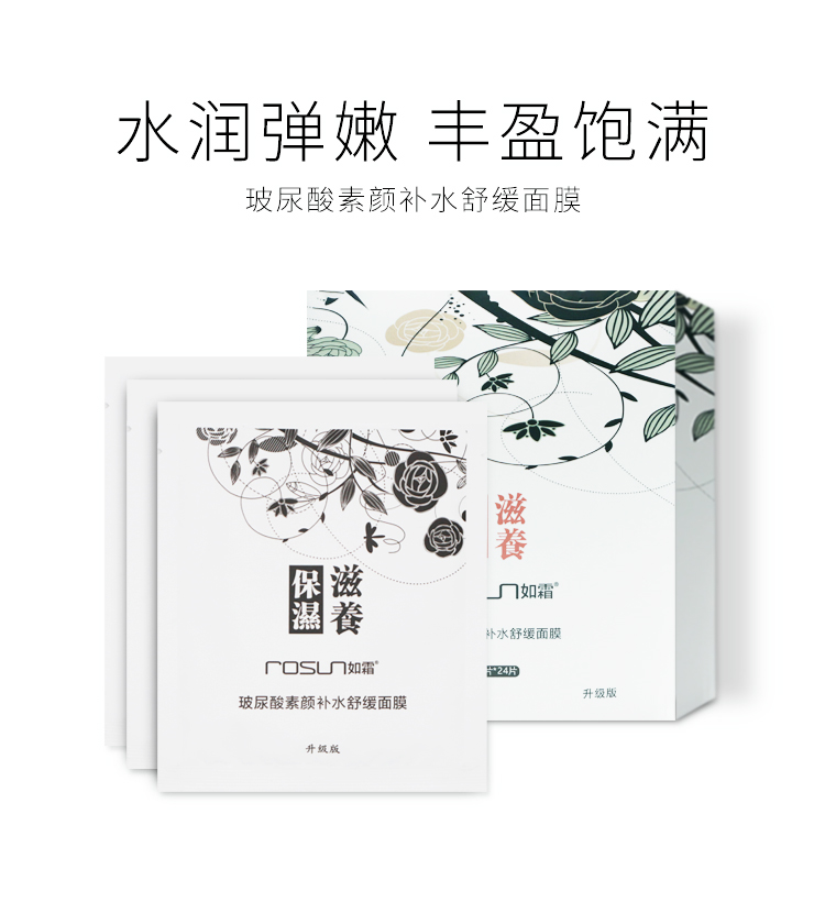 如霜玻尿酸素颜补水舒缓面膜女收缩毛孔提亮肤色淡化痘印蚕丝面膜