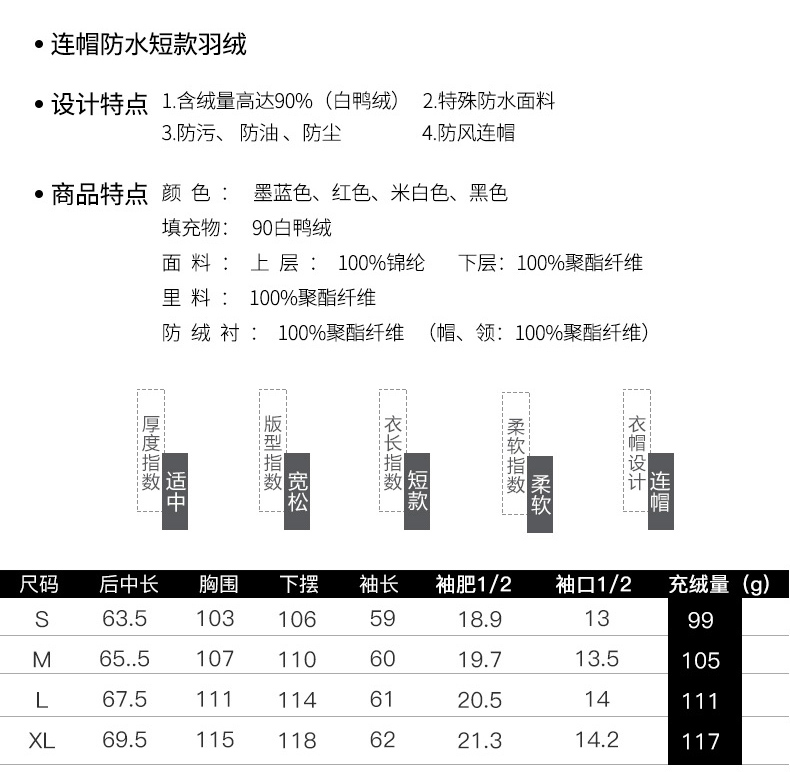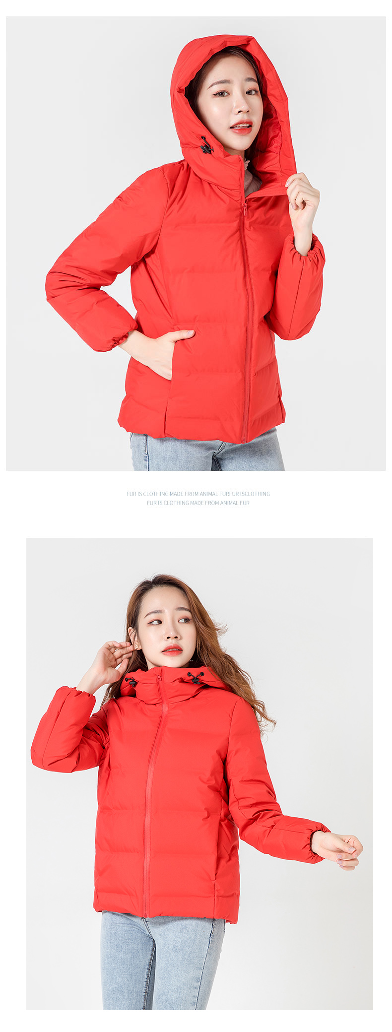 雅鹿羽绒服女短款2019年新款韩版大红色时尚连帽白鸭绒冬季外套D