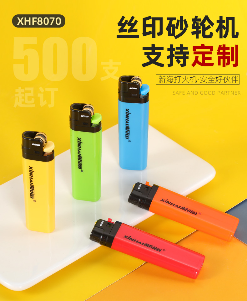 新海砂轮式打火机50支一次性滑轮火石打火机批发广告定制订做印字