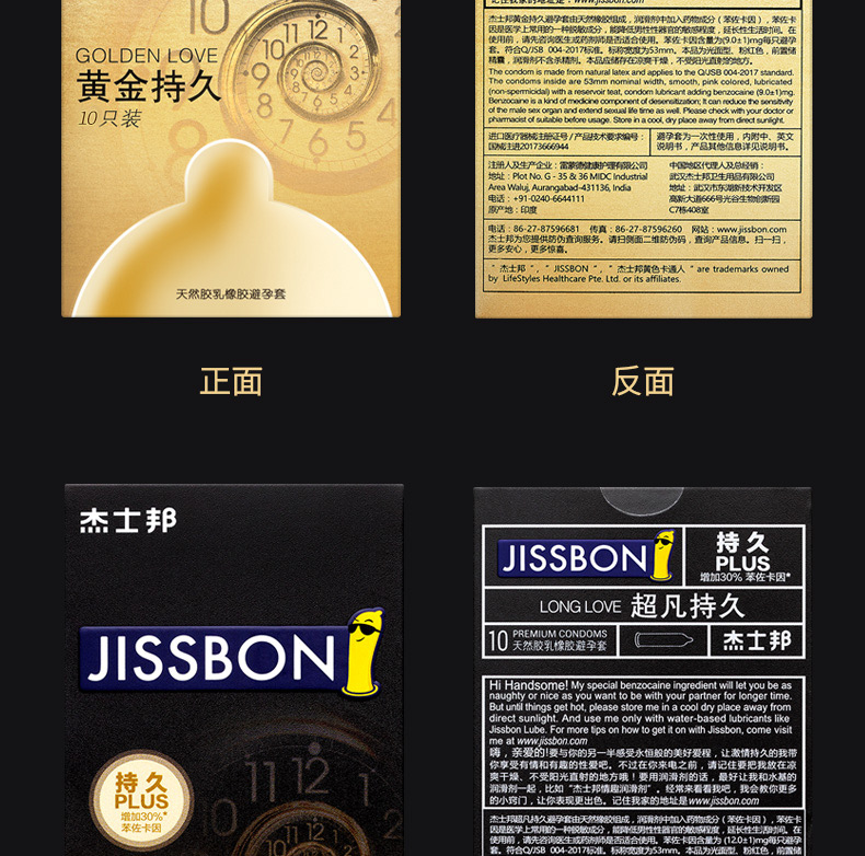 杰士邦延时避孕套黄金持久装防早泄男用延迟安全超薄0.01官网旗舰