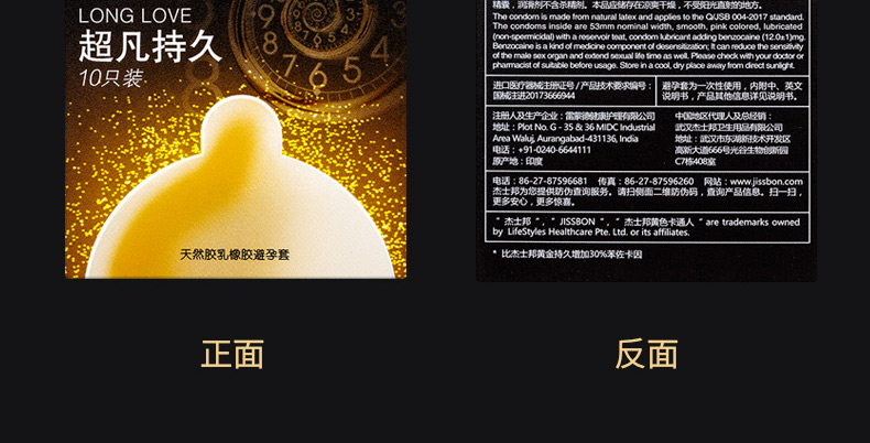 【杰士邦】延时避孕套,黄金持久装,防早泄男用安全超薄0.01,轻柔贴肤,成人计生用品,纤薄无佩戴感,多量润滑剂,超薄摩擦快感。
