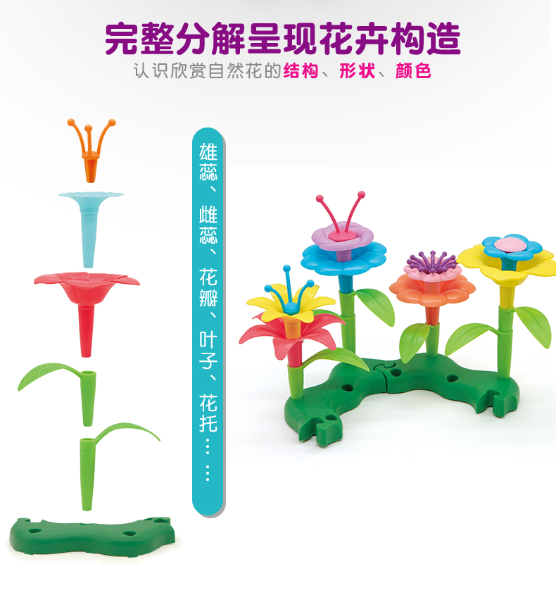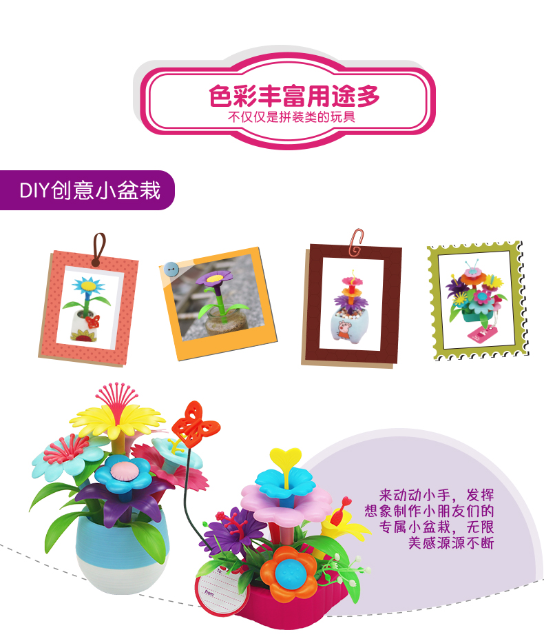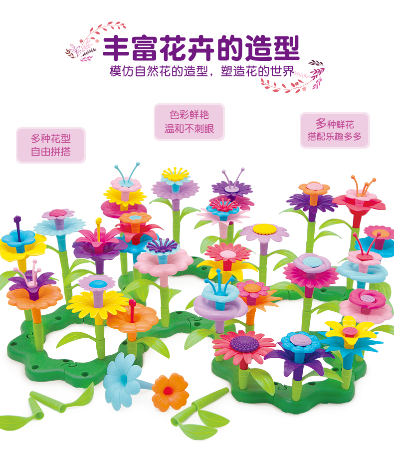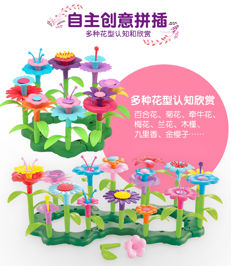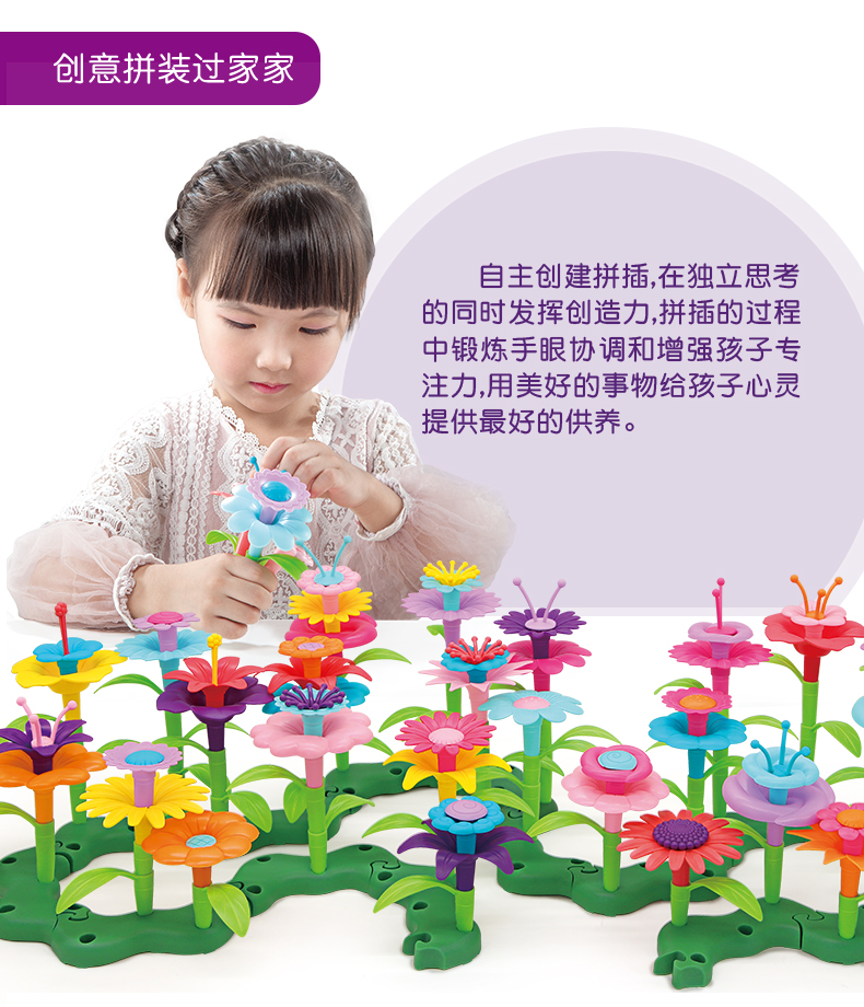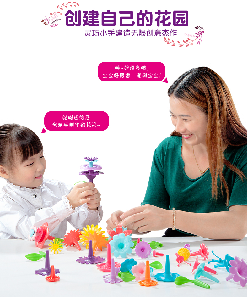 童商百变花园儿童手工diy早教积木拼装益智女孩3-6岁拼插插花玩具