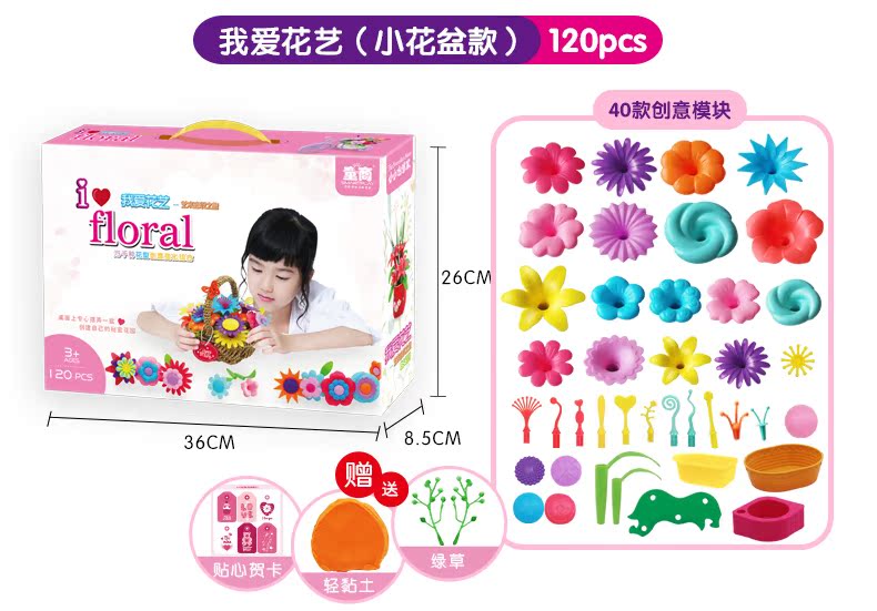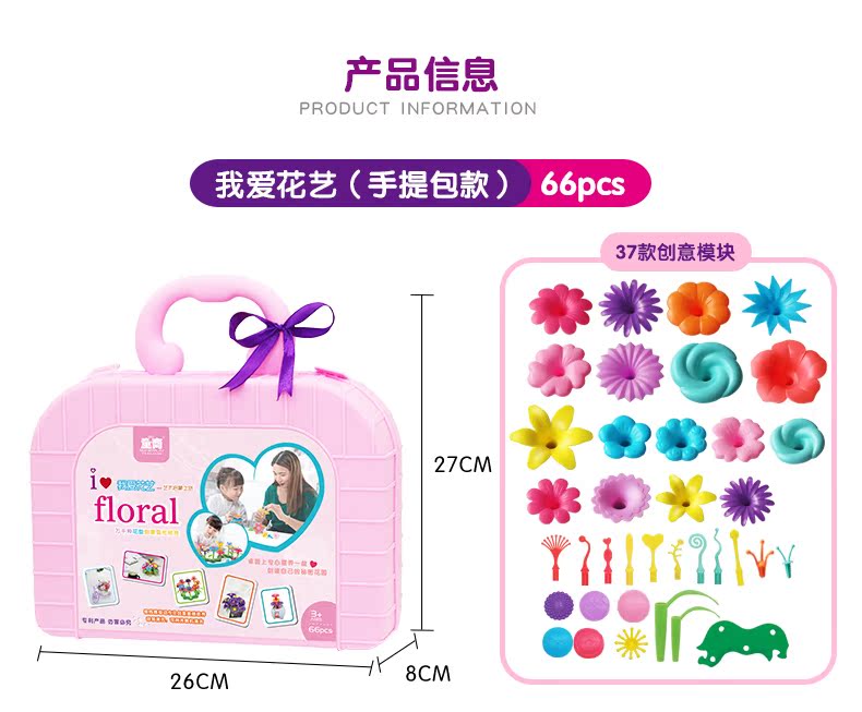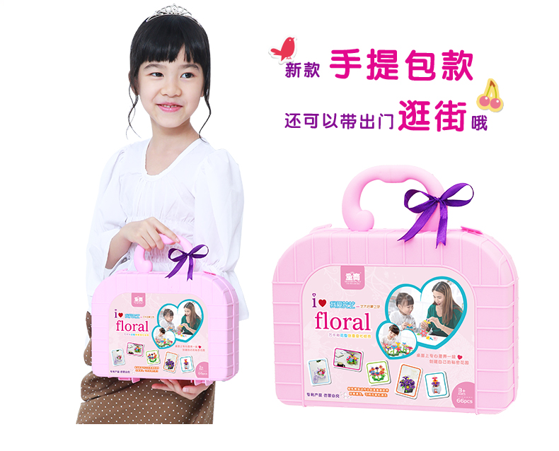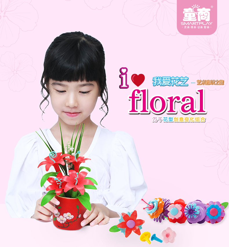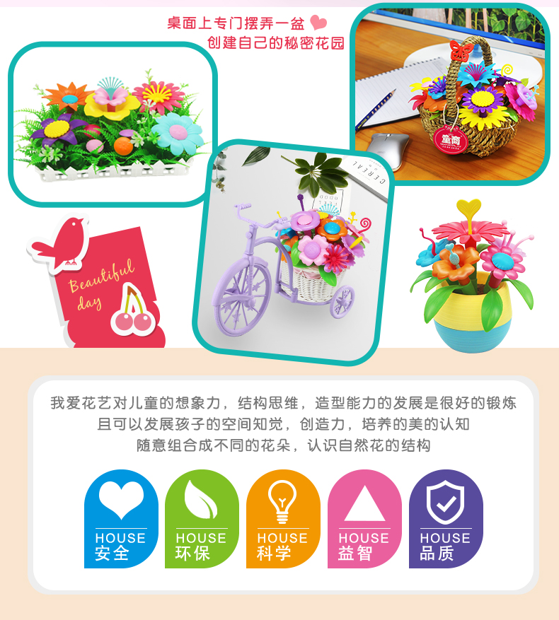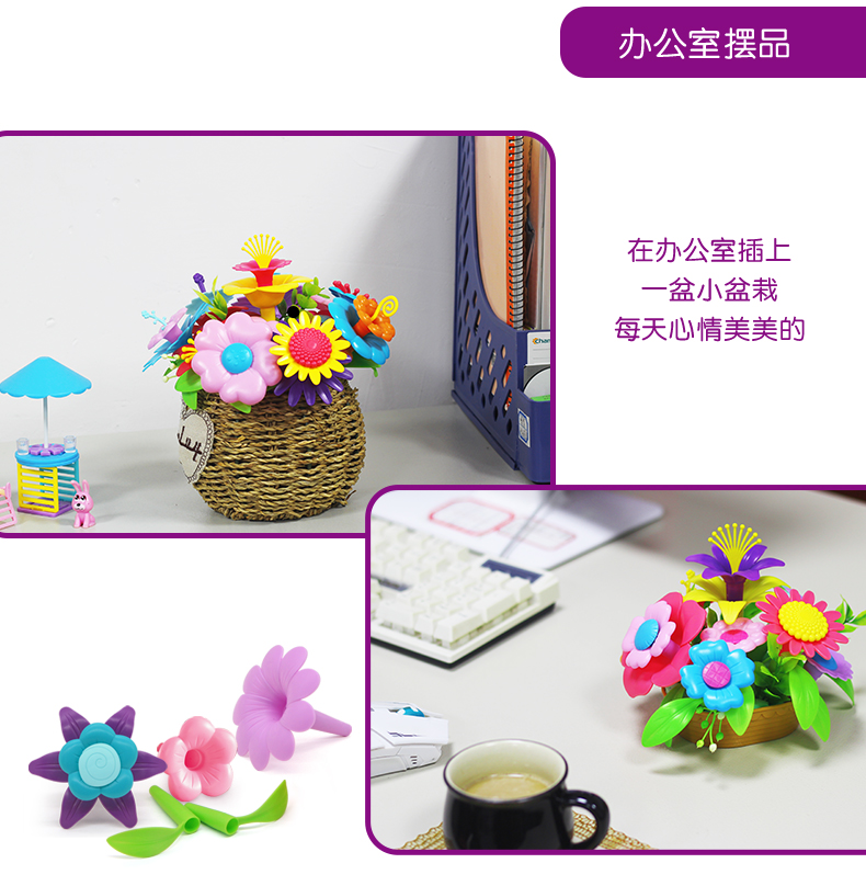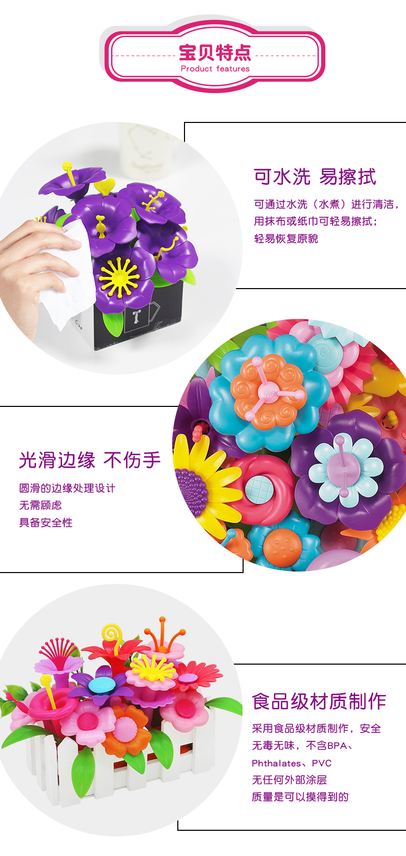 童商百变花园儿童手工diy早教积木拼装益智女孩3-6岁拼插插花玩具