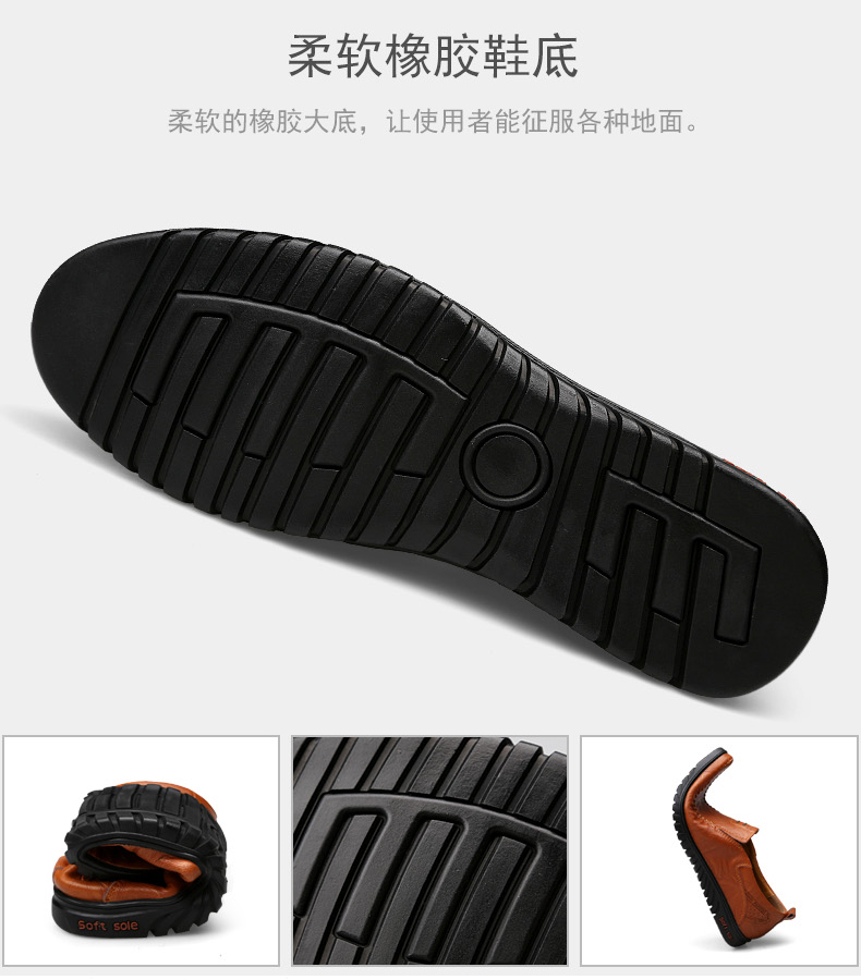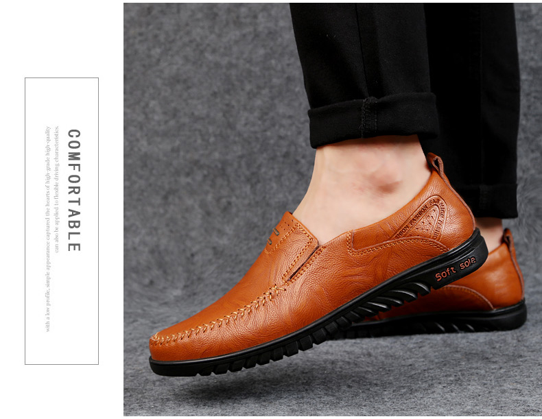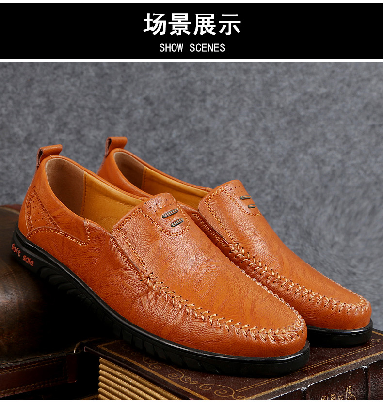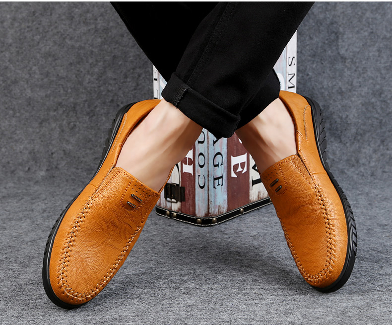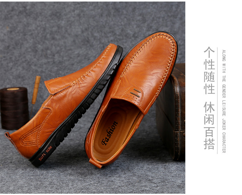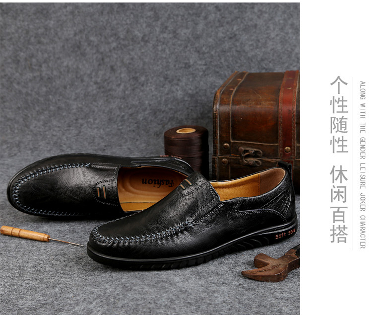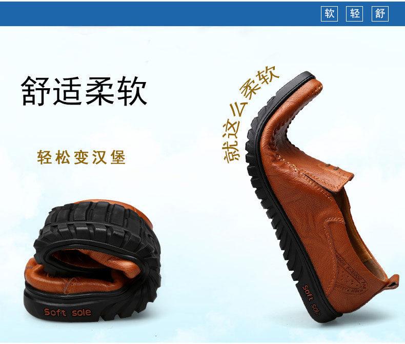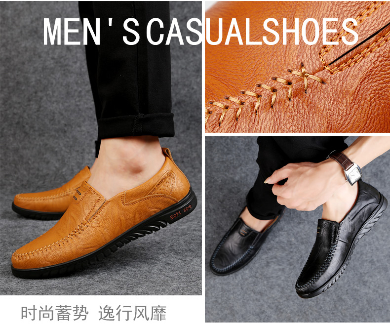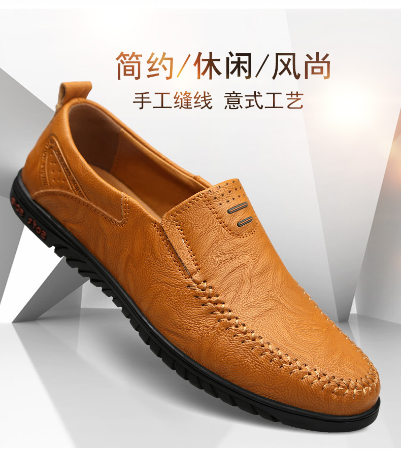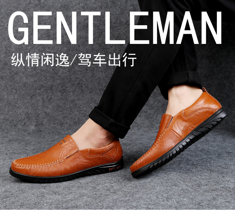 秋季男士牛皮休闲皮鞋透气舒适低帮鞋软底软皮时尚套脚懒人鞋子男