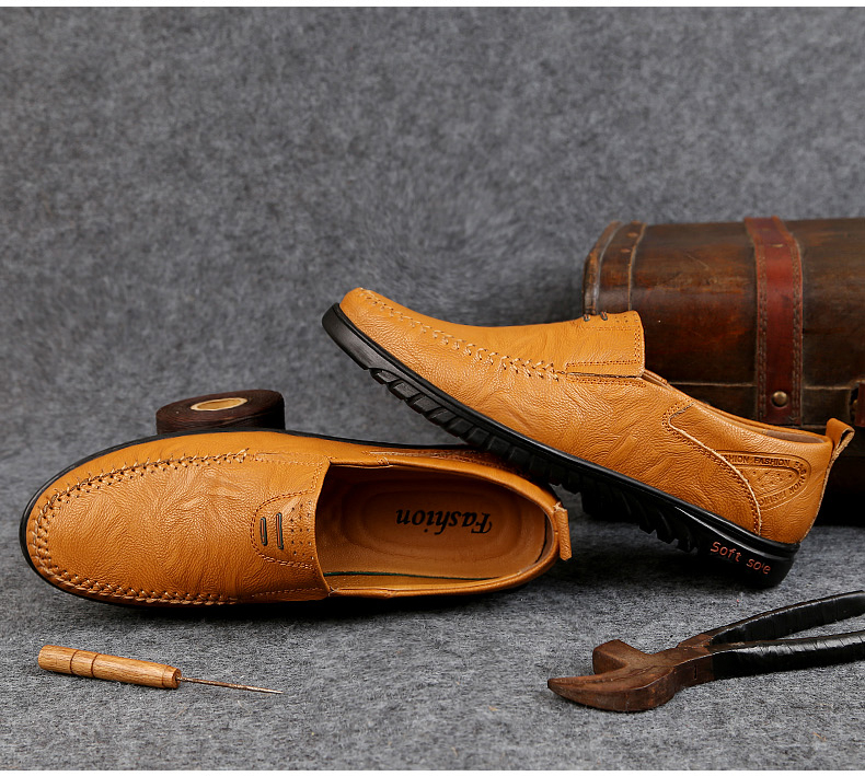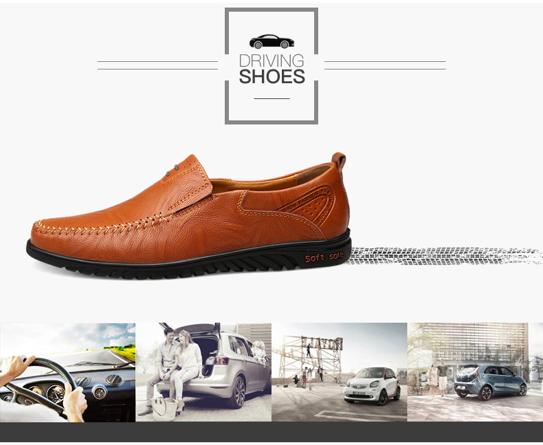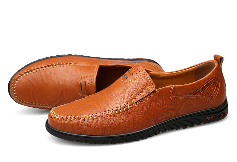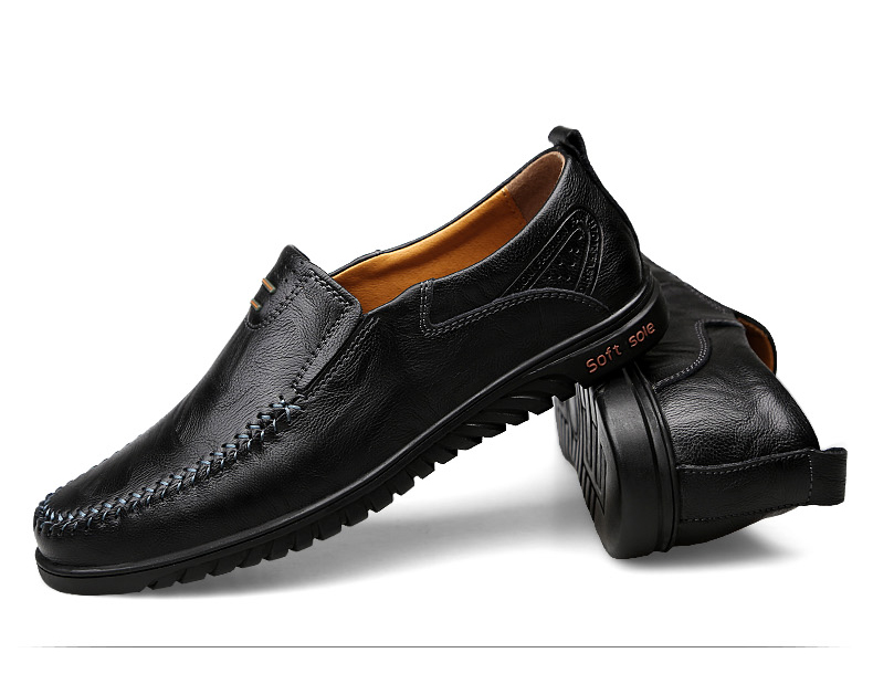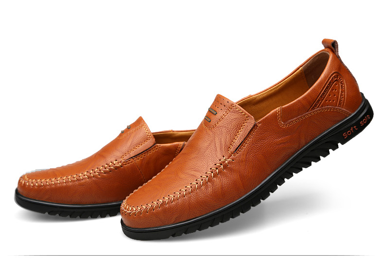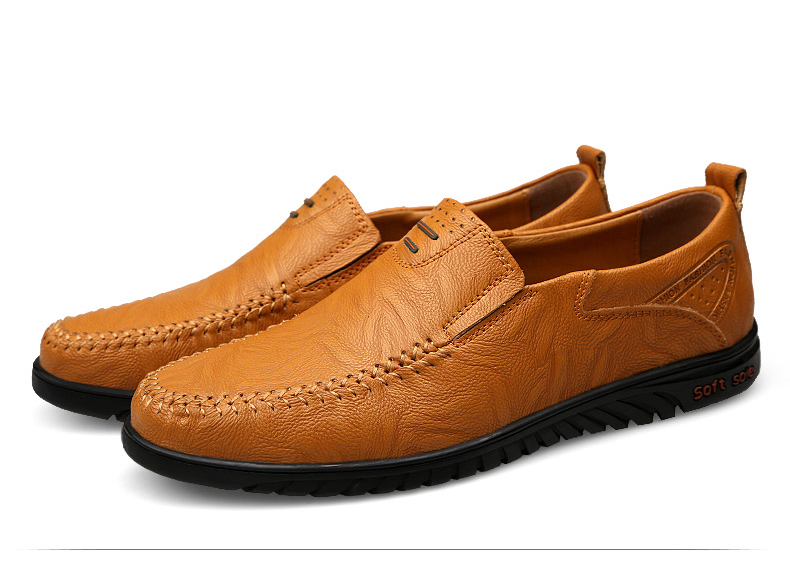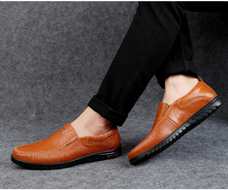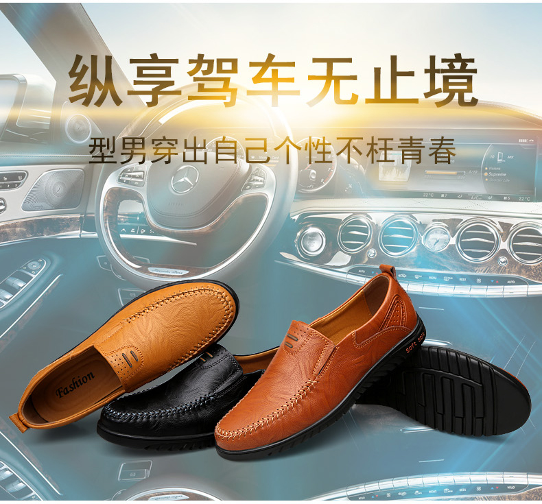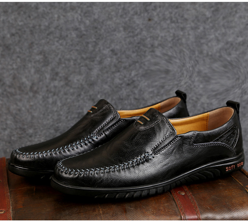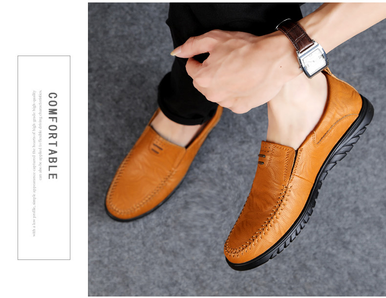 秋季男士牛皮休闲皮鞋透气舒适低帮鞋软底软皮时尚套脚懒人鞋子男