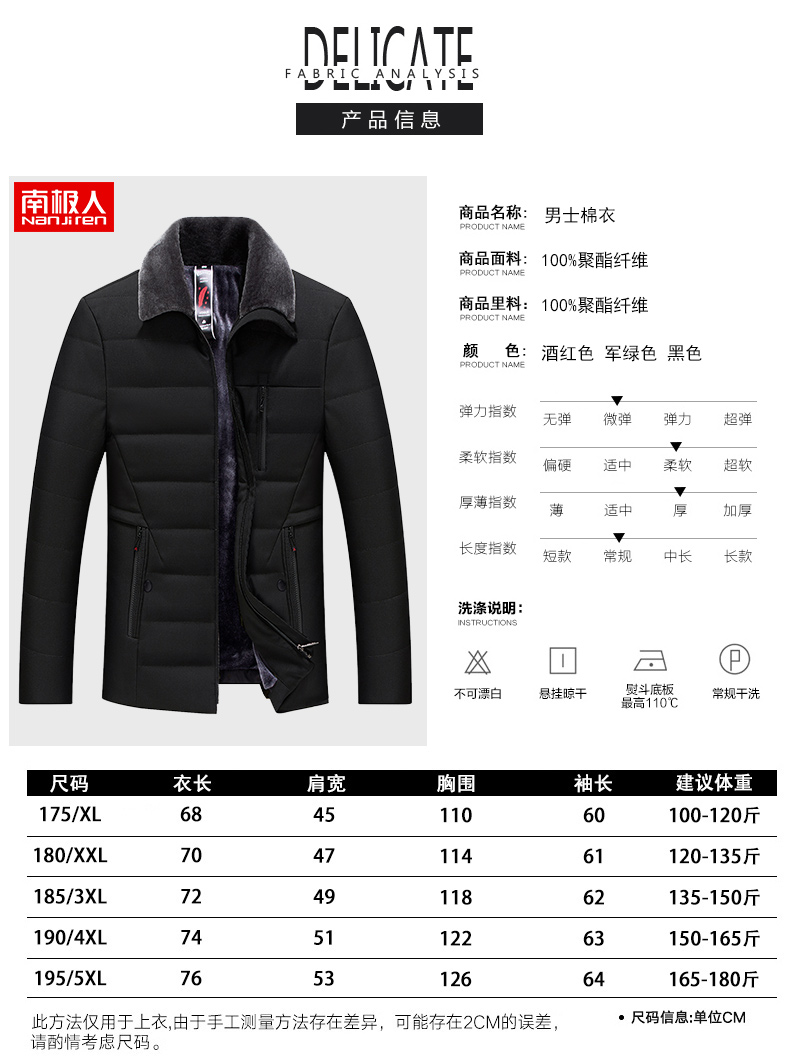 南极人棉衣男秋冬季新款中老年加厚保暖翻领短款棉袄爸爸男装外套