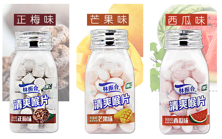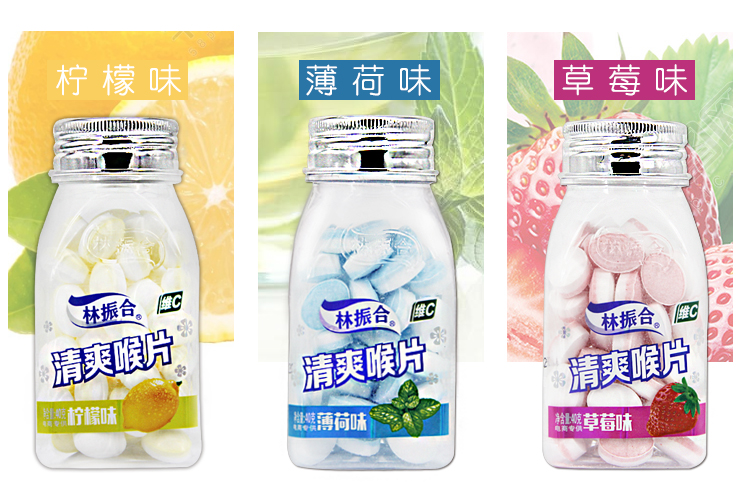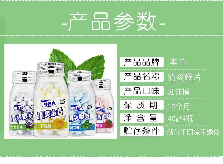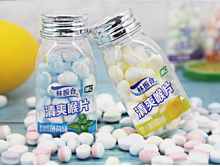 林振合爽口含片清爽薄荷糖吐息糖水果糖维c压片水果糖40g4瓶装