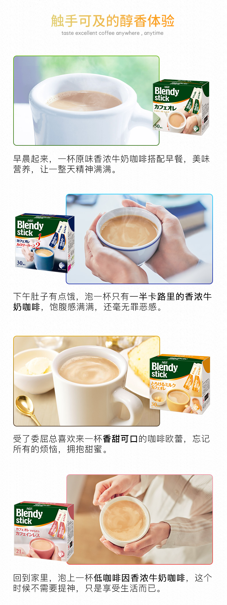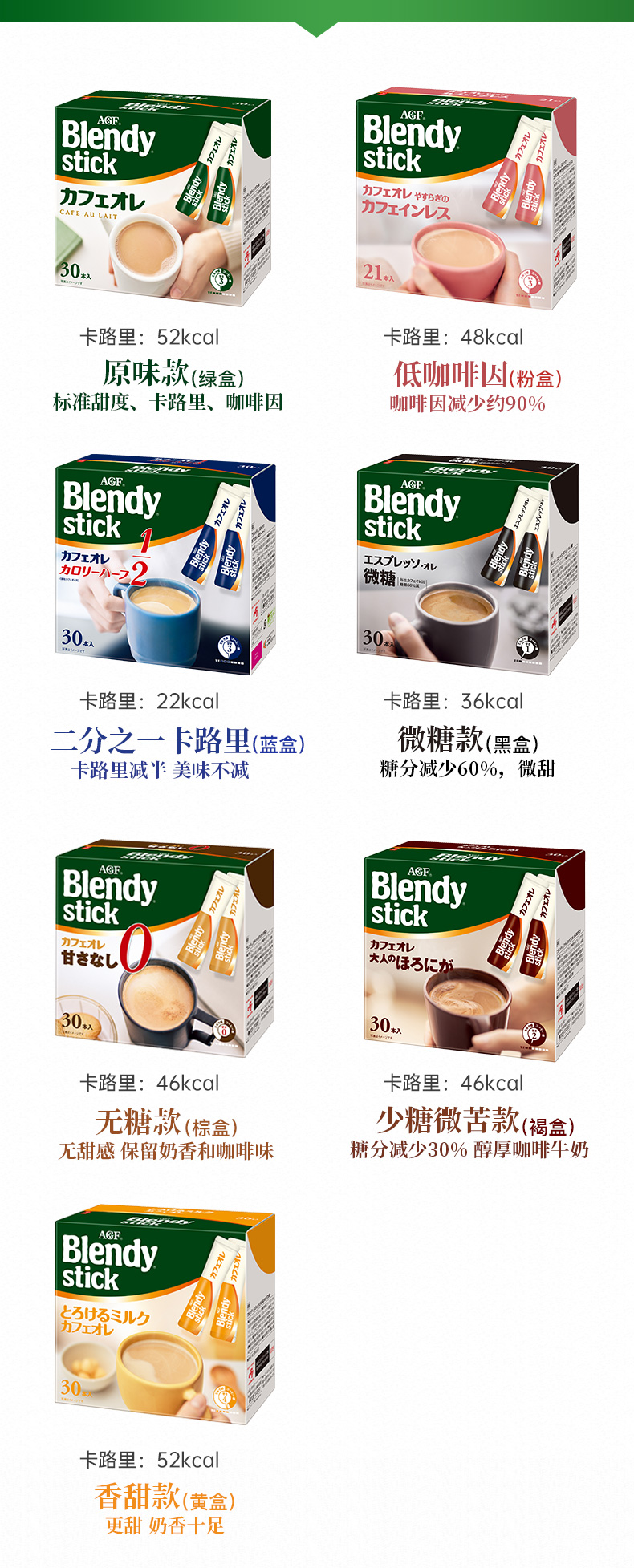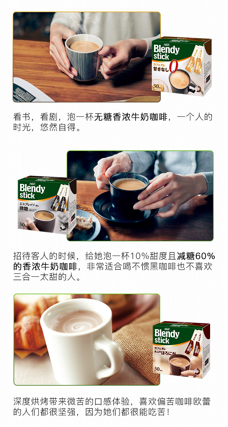 AGF Blendy日本蓝山风味咖啡粉原味进口速溶咖啡脱脂牛奶咖啡条装