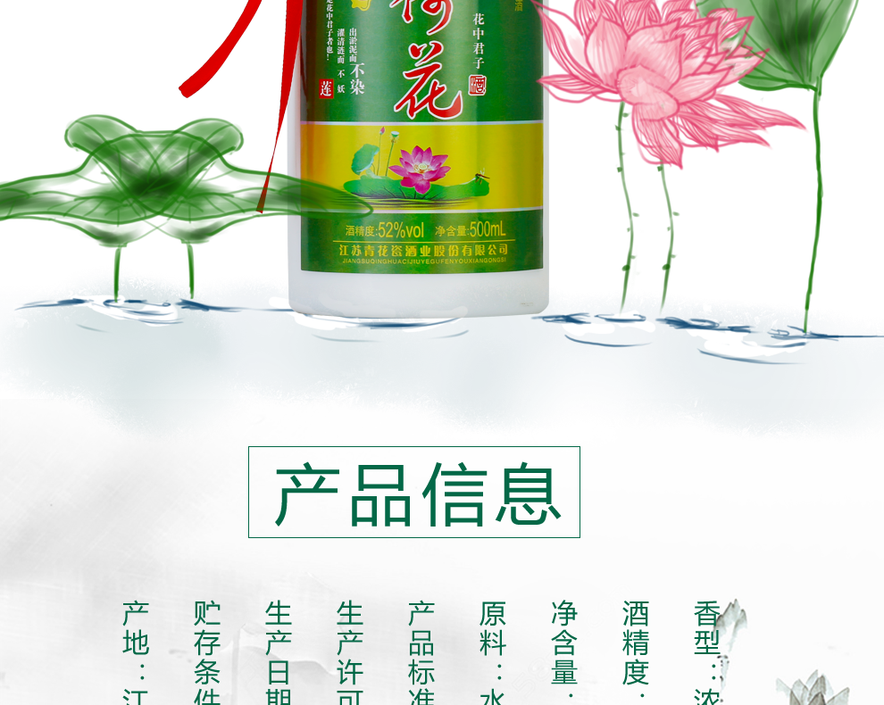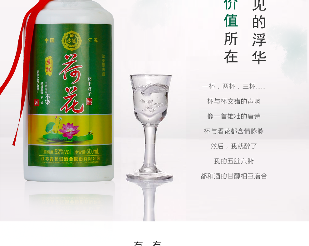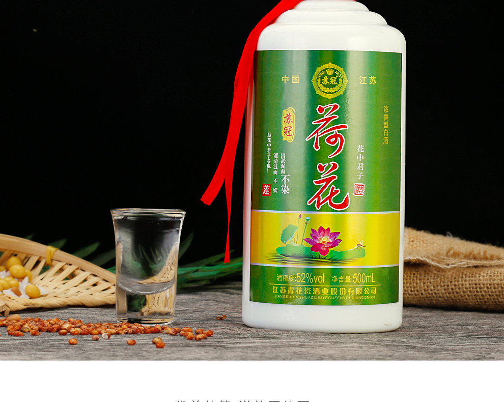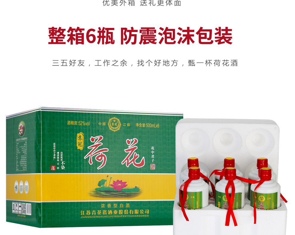 苏冠整箱6瓶52度粮食酒礼品装,醉美荷花酒,入口甜、落口绵、尾净余长,口感好,醒酒快,多年窖藏!送礼更体面!