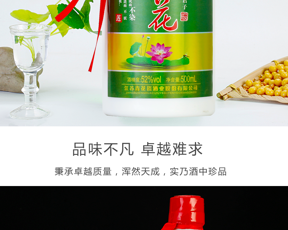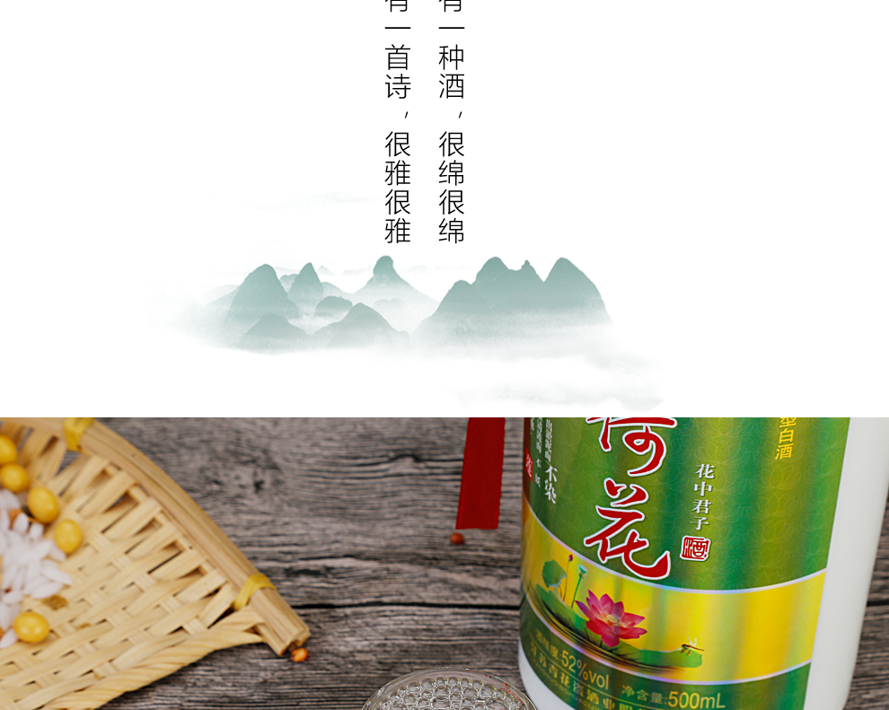 荷花酒白酒瓶装整箱6瓶52度粮食酒礼品送礼高度高粱酒浓香型特价
