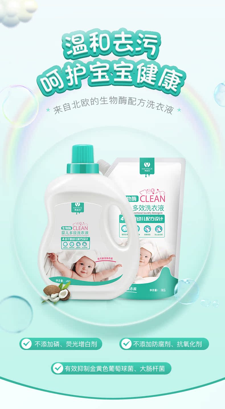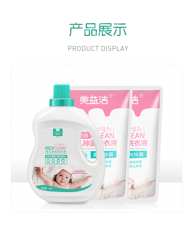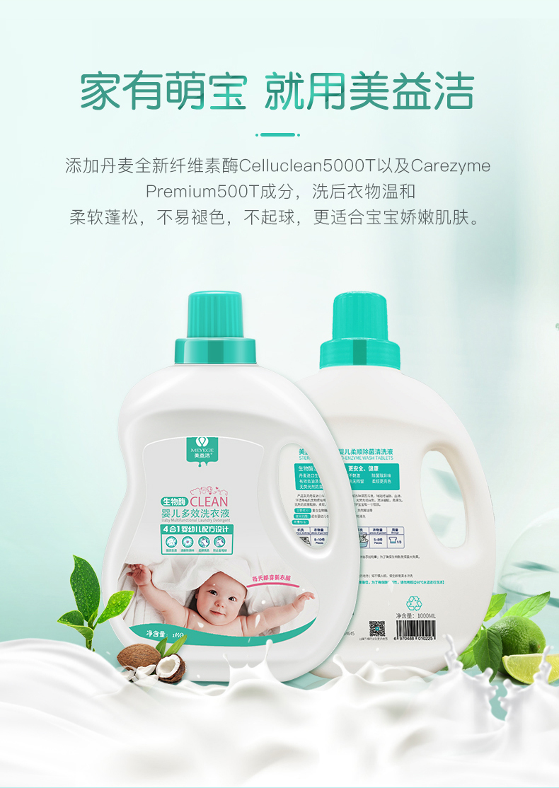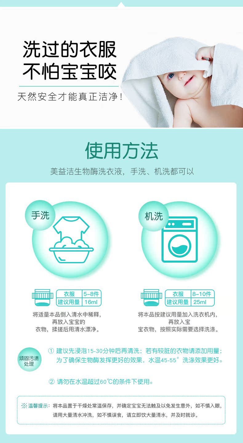美益洁生物酶宝宝洗衣液婴儿专用抑菌去渍亲肤天然新生除螨去污渍