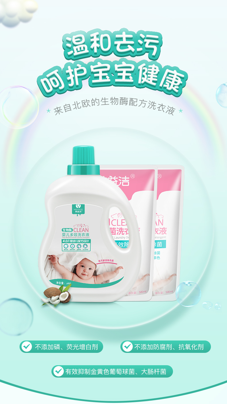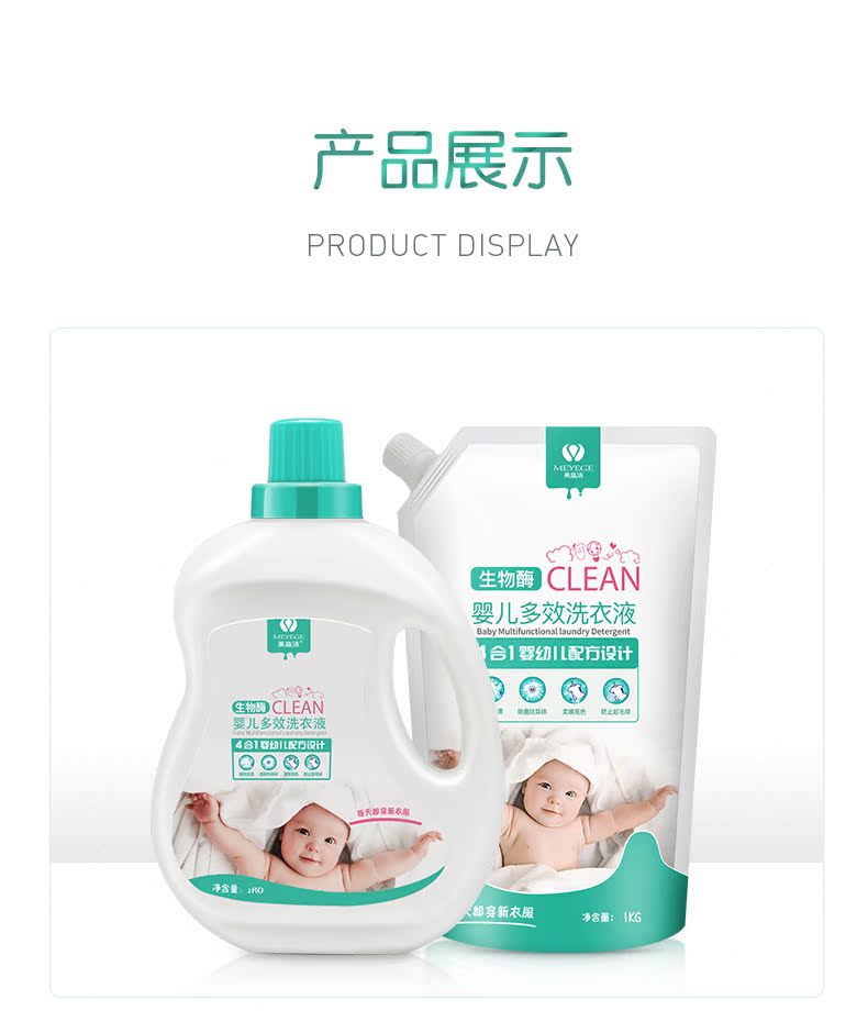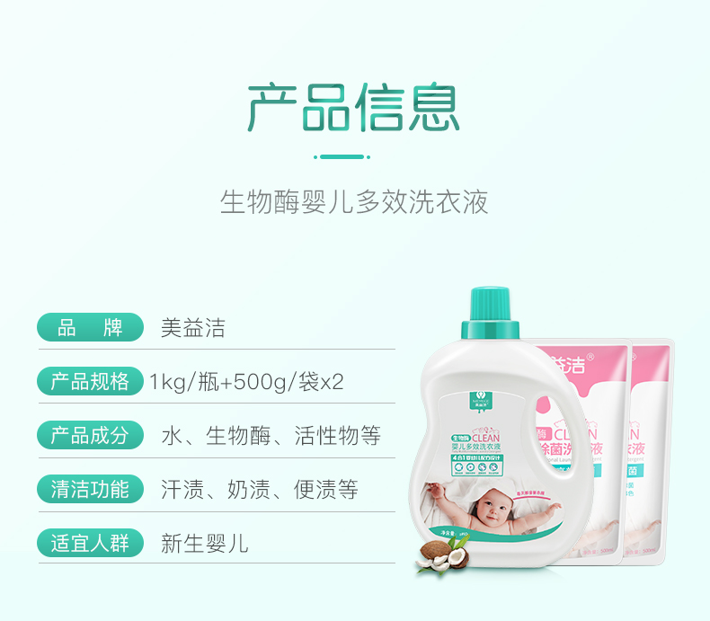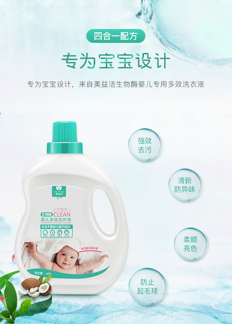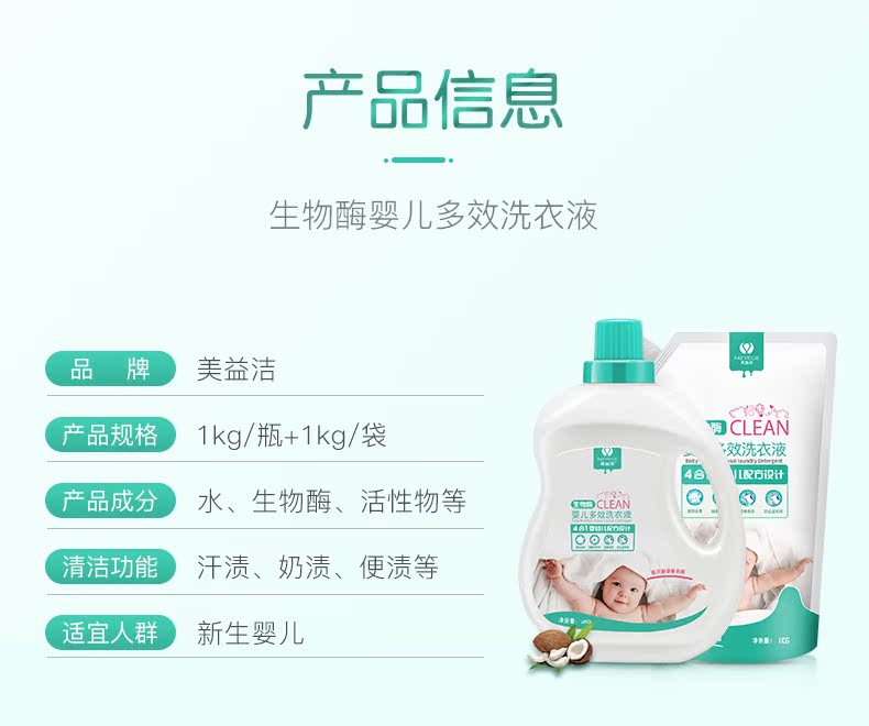 美益洁生物酶宝宝洗衣液婴儿专用抑菌去渍亲肤天然新生除螨去污渍