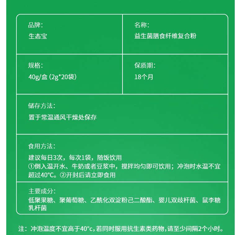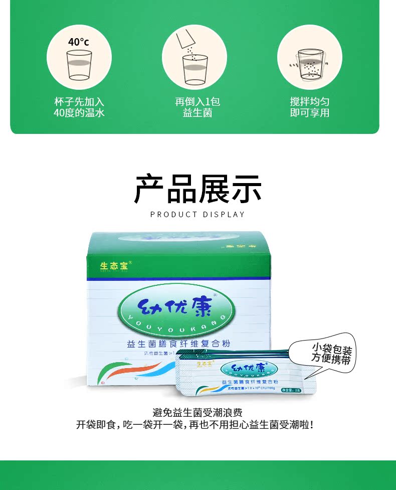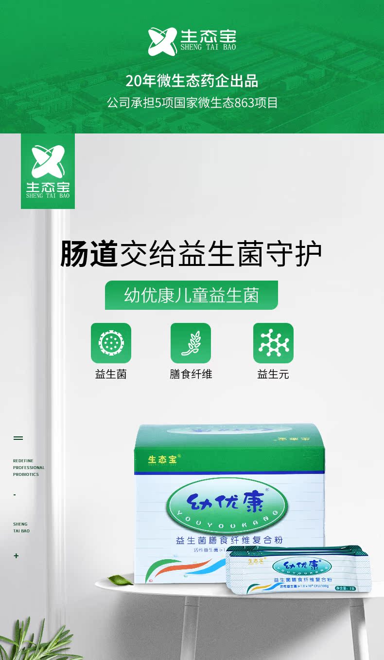 生态宝儿童益生菌粉2g*20袋肠道肠胃益生元幼优康膳食纤维复合粉