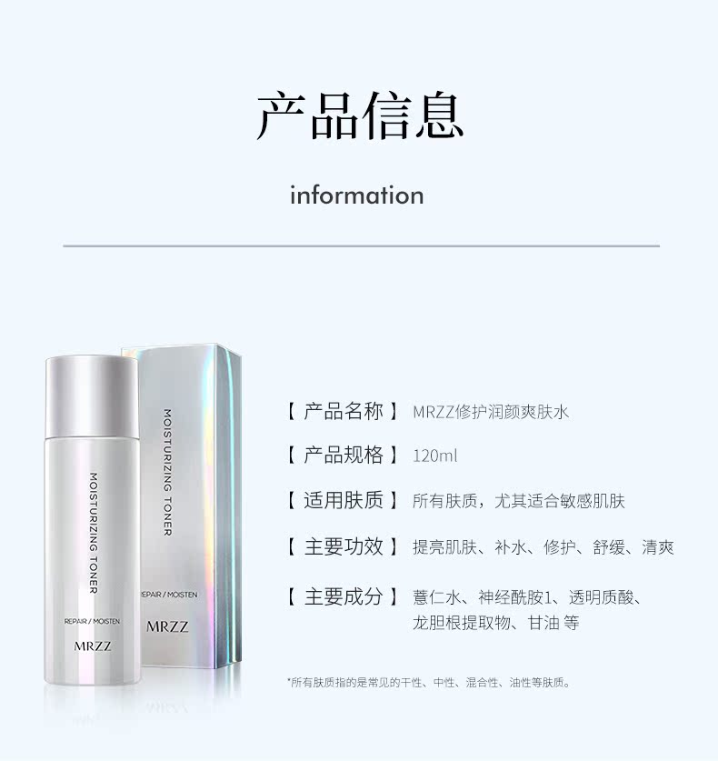 MRZZ修护润颜爽肤水女薏仁薏米水化妆水保湿补水正品湿敷水精华水