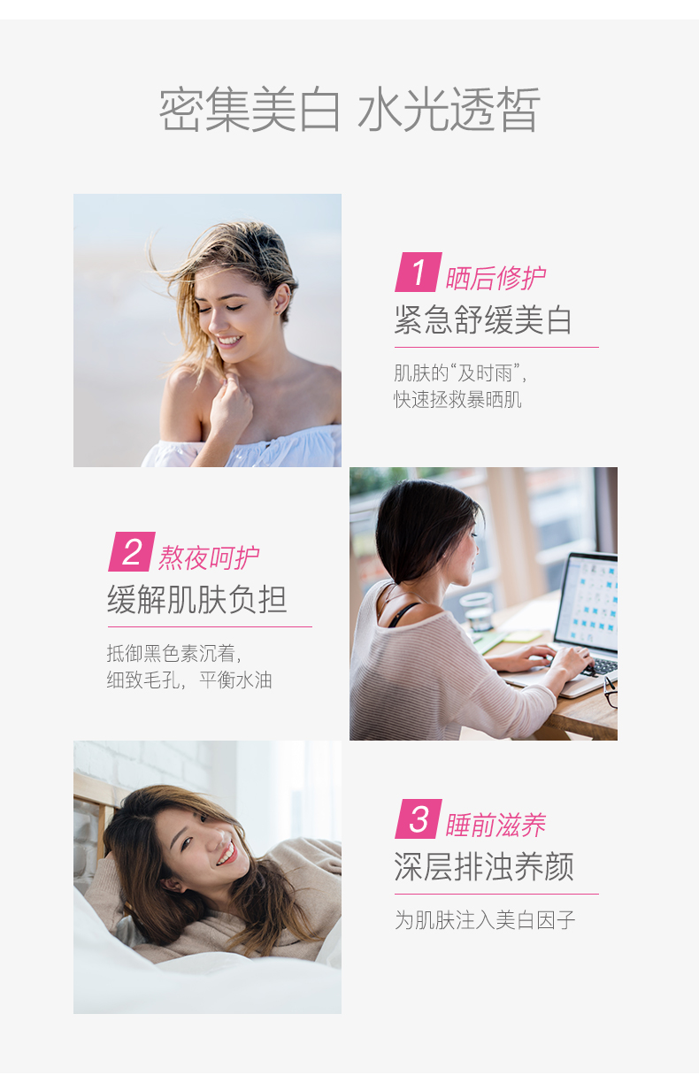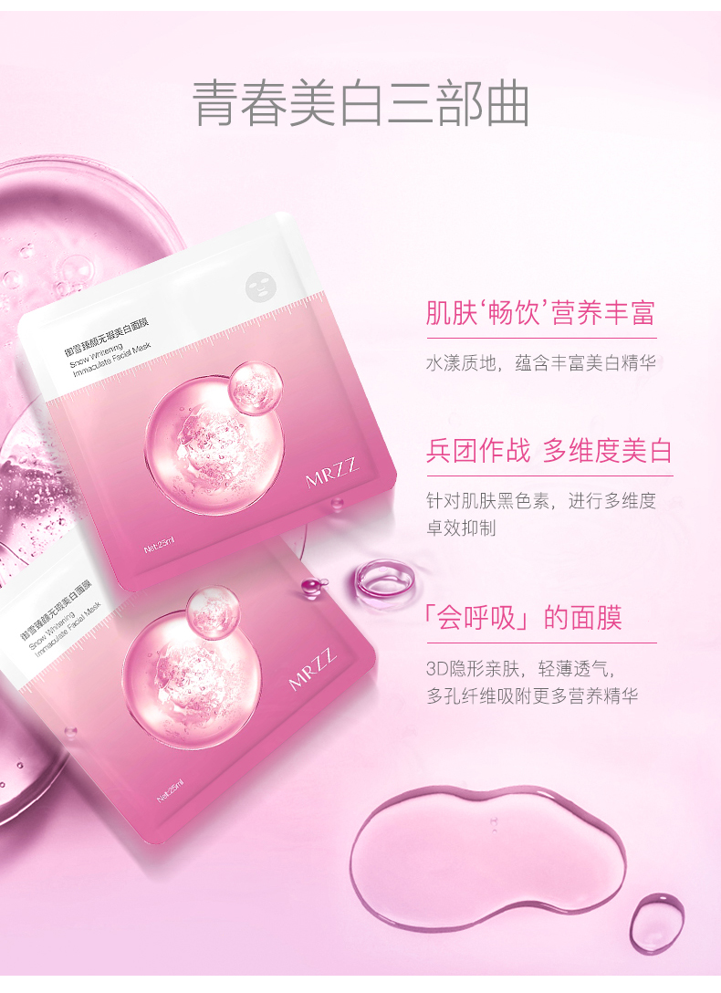 美白淡斑,质地清爽不油腻,会呼吸的三层蚕丝面膜,美白水润滋养,蕴含丰富营养的补水美白物质,嫩滑修护,深层清洁,一觉养润水光肌,免清洗,整夜唤醒肌肤活力!