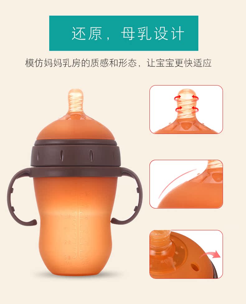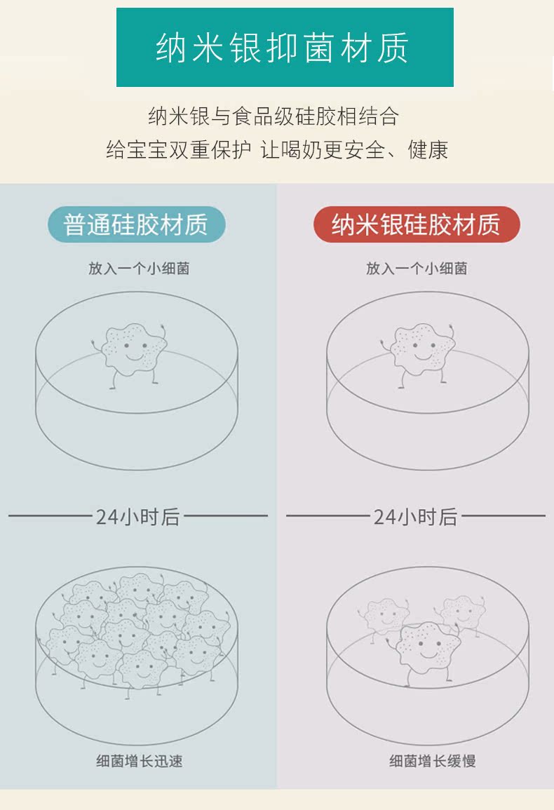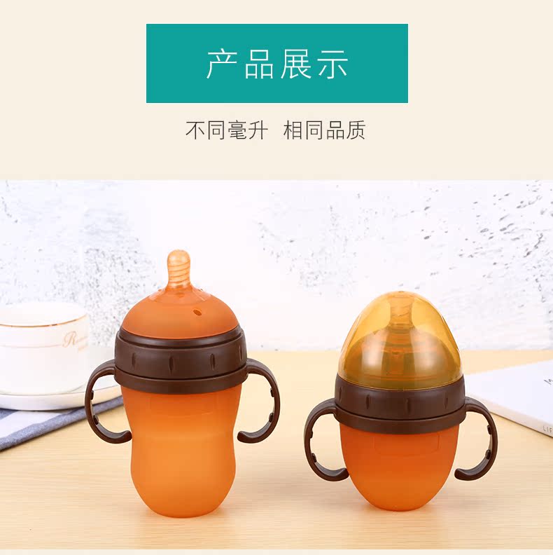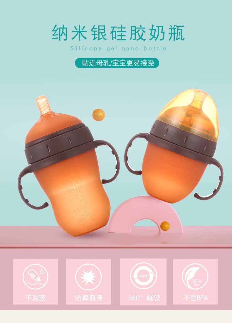 宽口径新生儿硅胶奶瓶,仿母乳奶嘴,纳米银全硅胶奶瓶,可以高温水煮消毒安全无异味防摔防烫,让宝贝更快适应,赠品丰富【赠运费险】