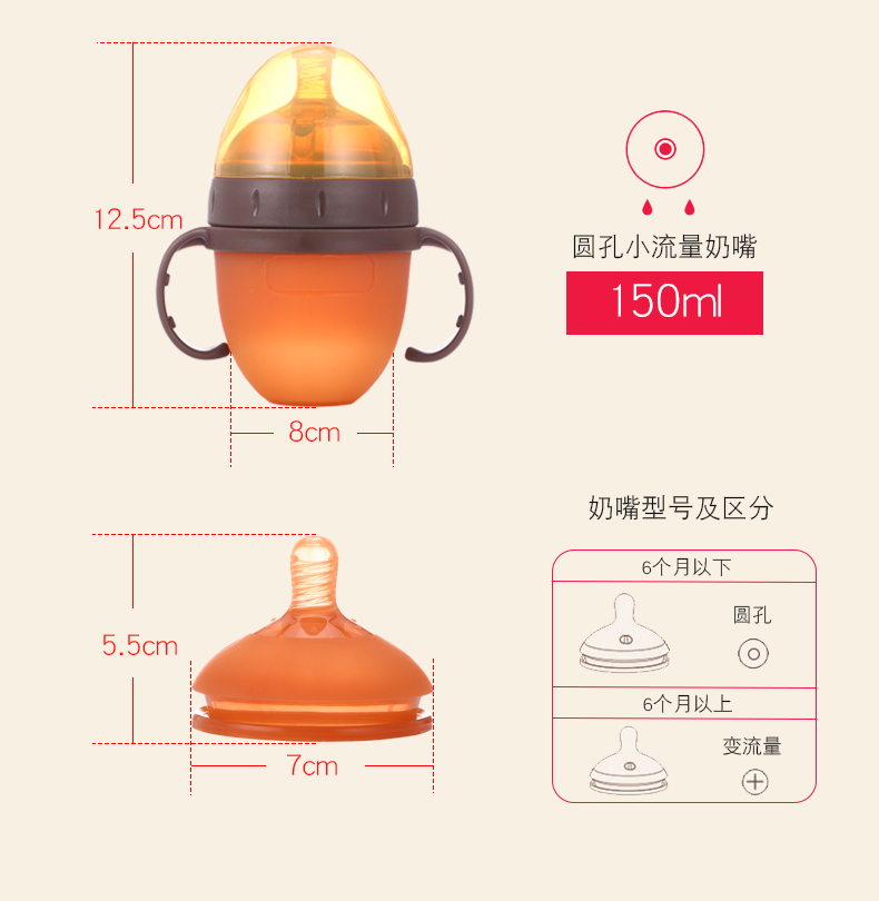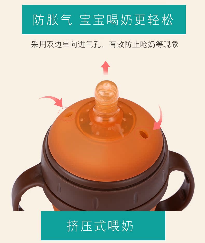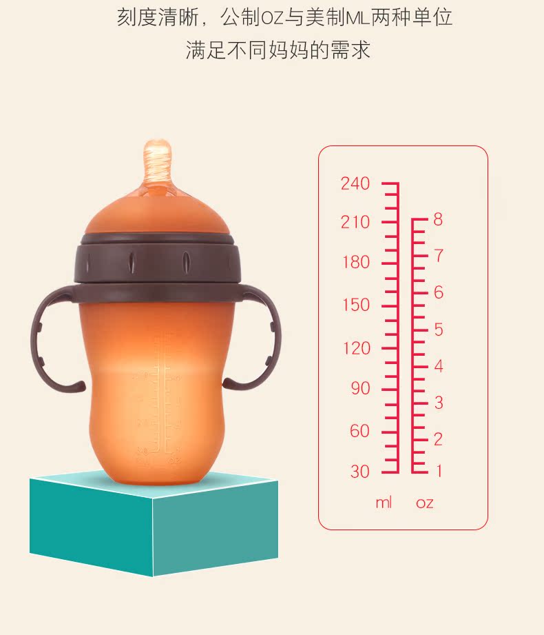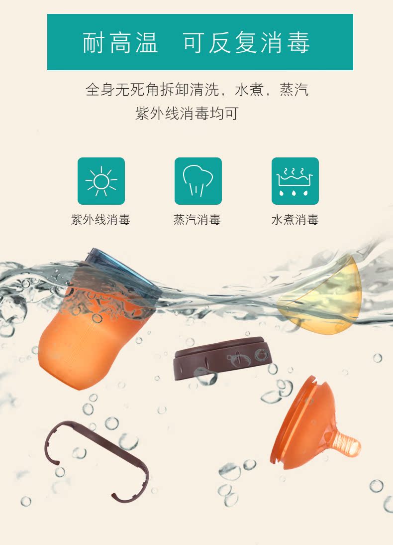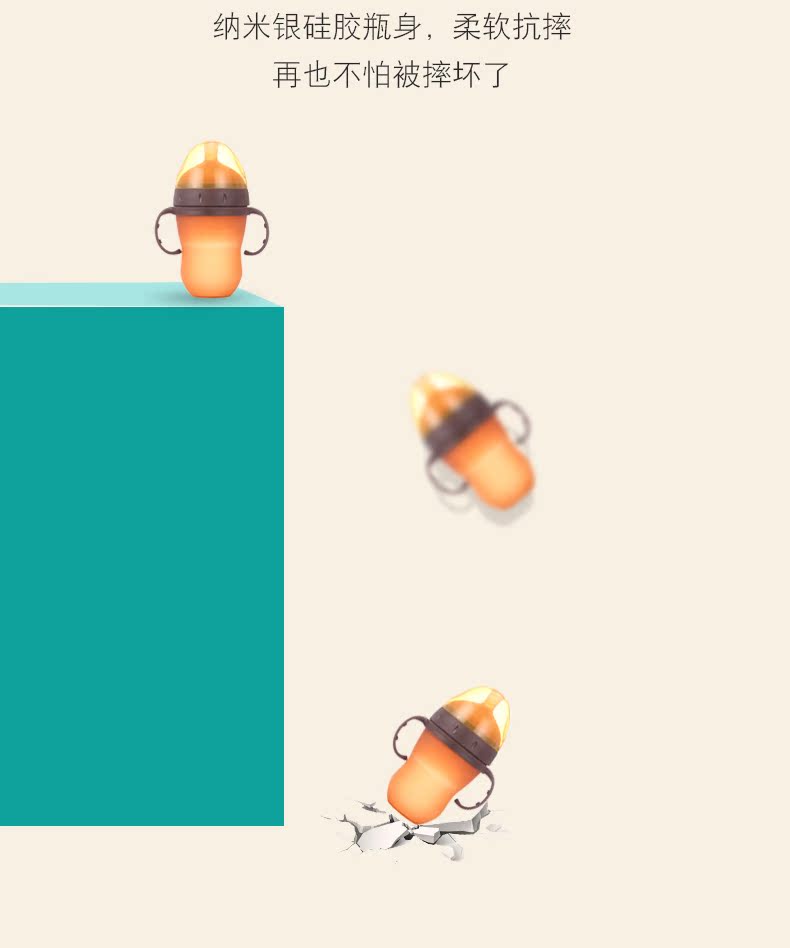 宽口径新生儿硅胶奶瓶,仿母乳奶嘴,纳米银全硅胶奶瓶,可以高温水煮消毒安全无异味防摔防烫,让宝贝更快适应,赠品丰富【赠运费险】