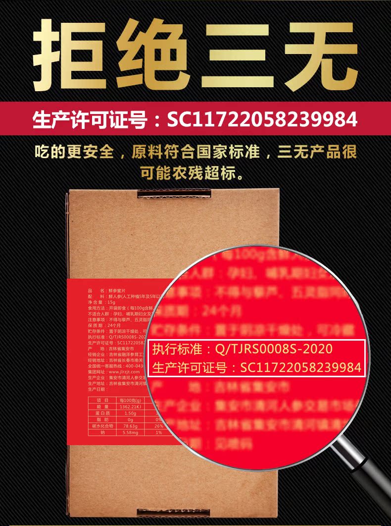 融泽鲜人参蜜片即食鲜参蜜片长白山人参片鲜人参蜜片15g顺丰发货