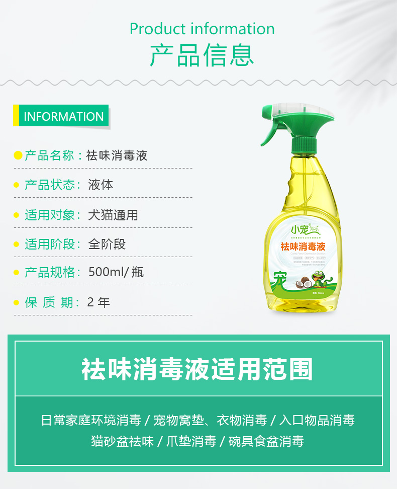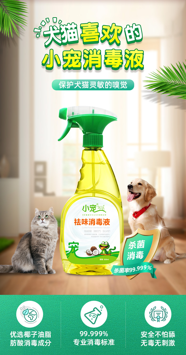 小宠祛味消毒液500ml猫狗除臭剂宠物消毒液嘘后水除猫尿狗尿异味