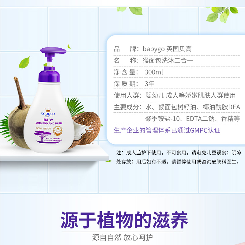 babygo洗发沐浴露二合一婴幼儿新生宝宝正品小孩中大童洗沐300ml