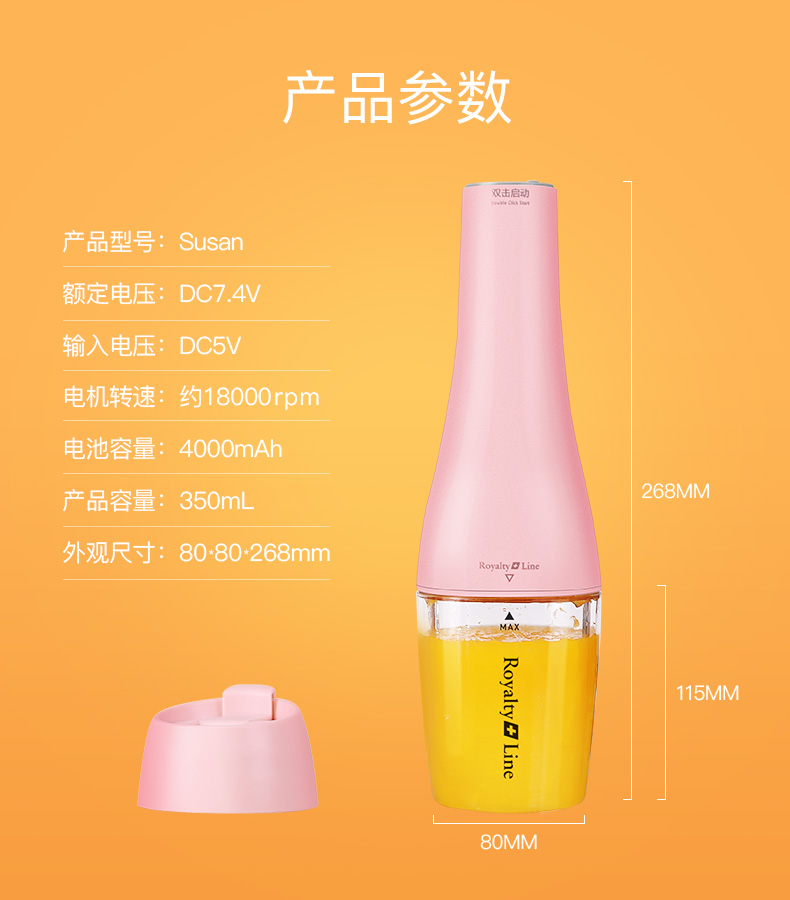 Royalty line瑞士罗娅榨汁机家用水果小型榨汁杯电动便携式果汁杯