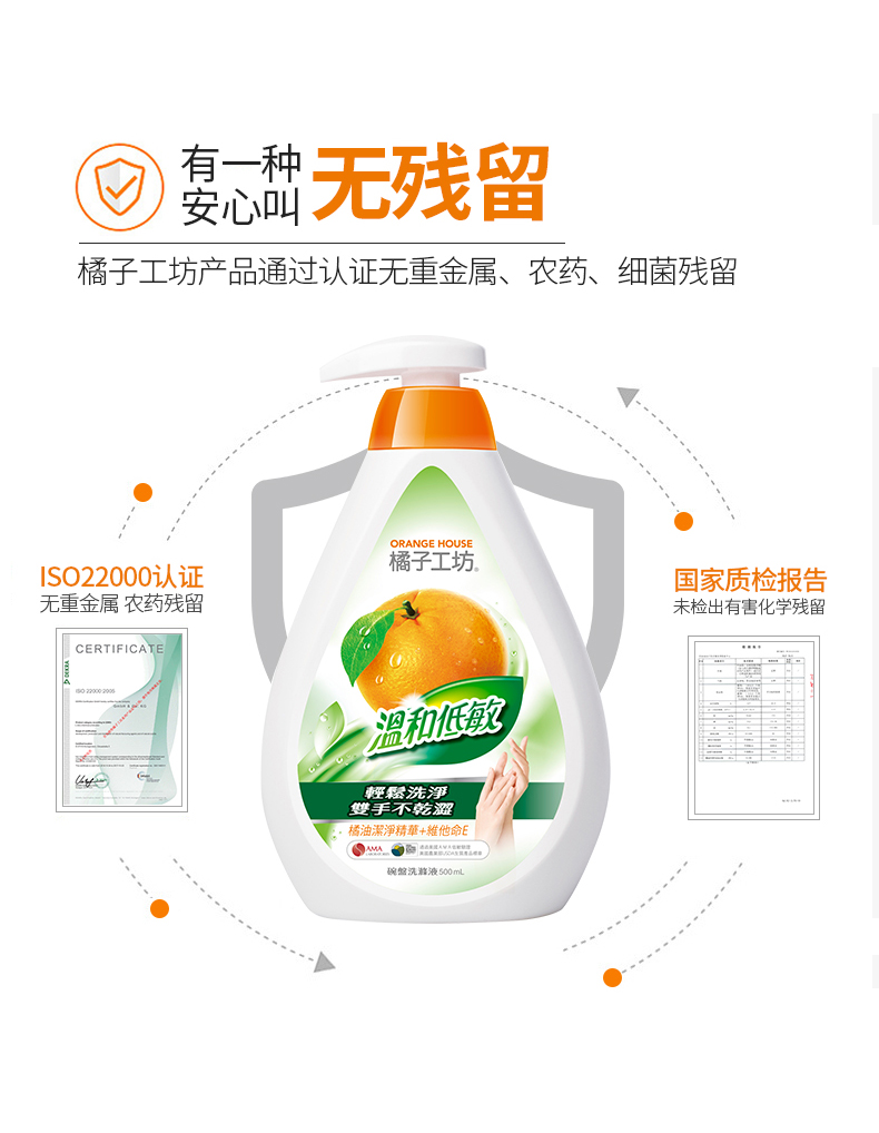 橘子工坊洗洁精家庭装家用洗涤剂洗碗液洗洁剂洗洁净果蔬清洗剂