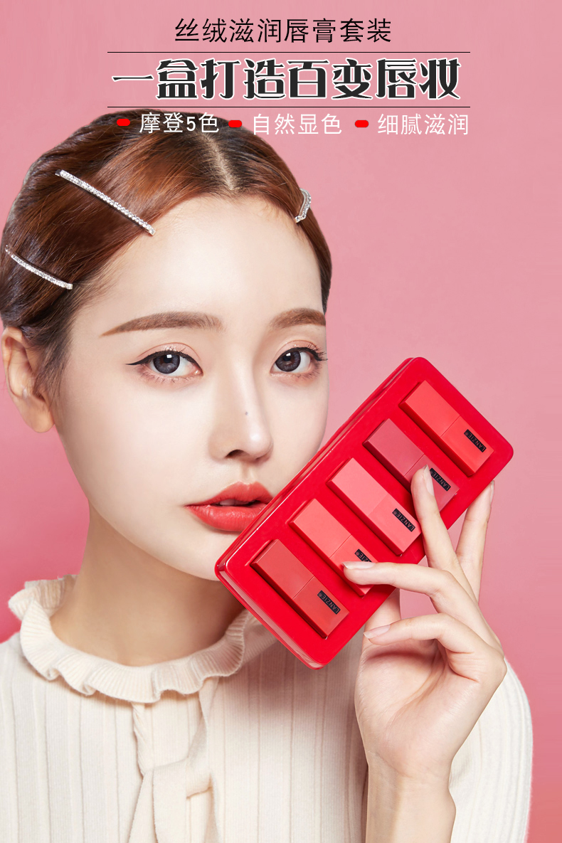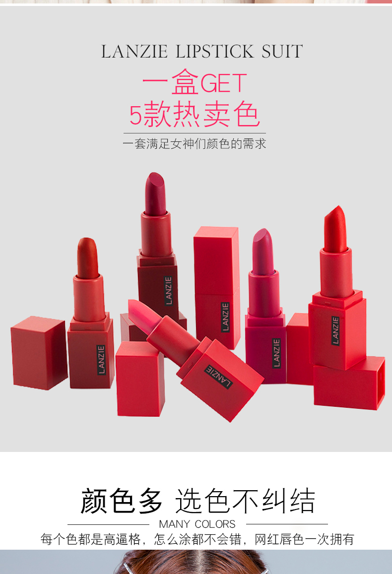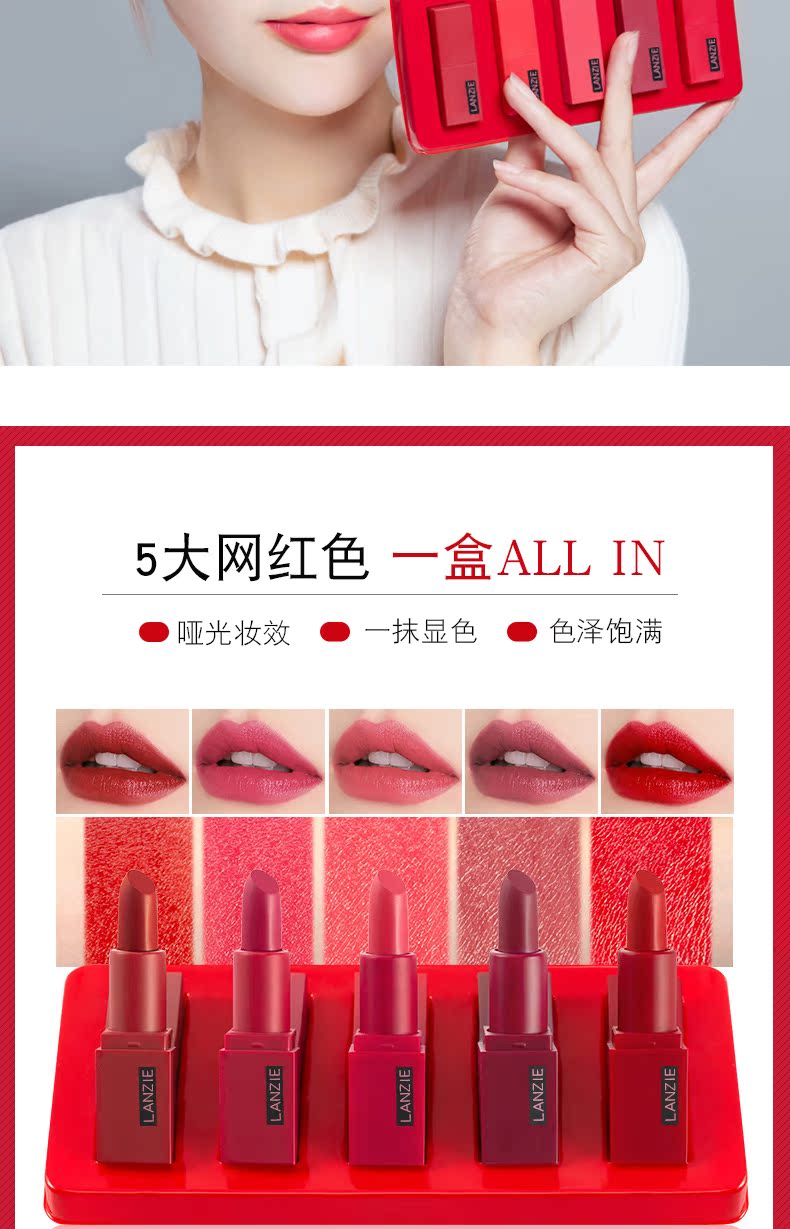 【兰芝宜】丝绒滋润唇膏套装,摩登5色,一盒GET·5款热卖色,一套满足女神们颜色的需求,每个色都是高逼格,怎么涂都不会错,网红唇色一次拥有~~