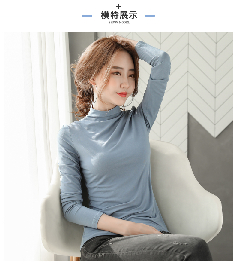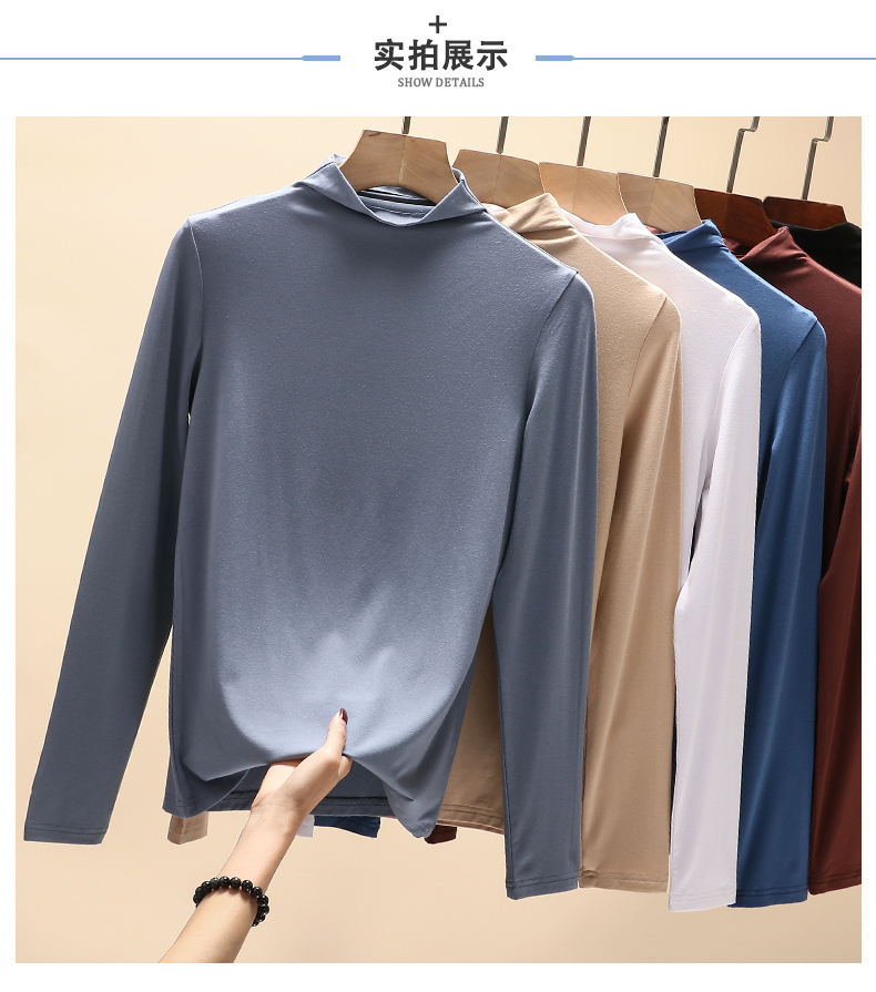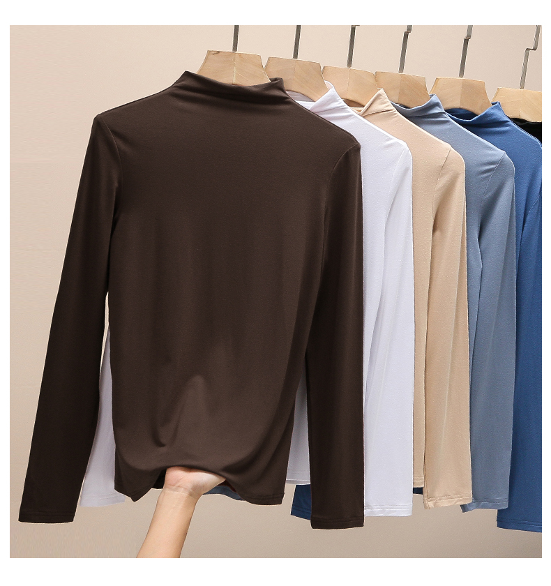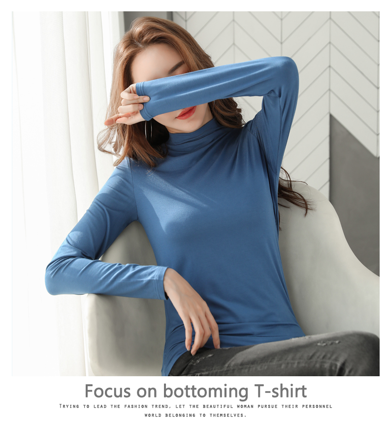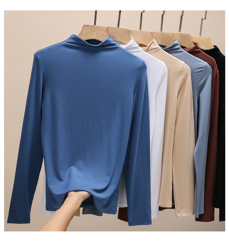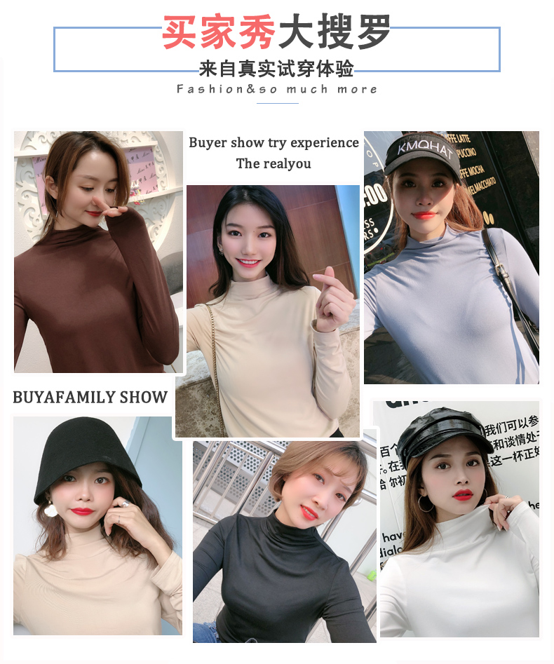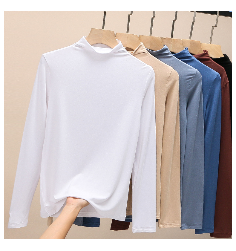 莫代尔打底衫女半高领2020新款洋气上衣春秋修身长袖t恤白色内搭