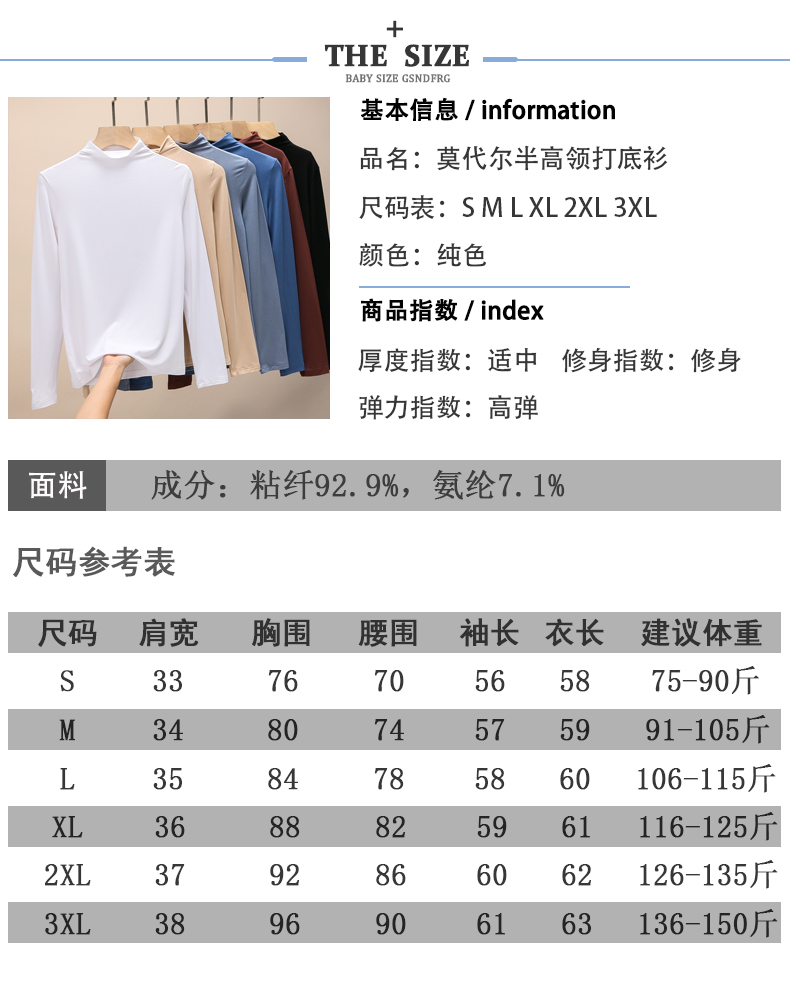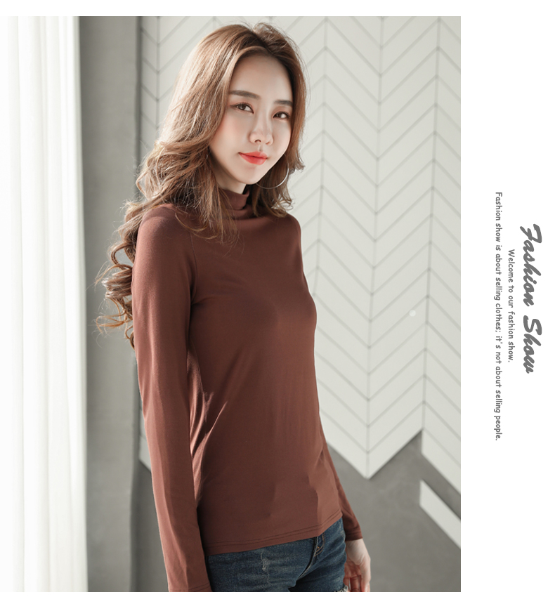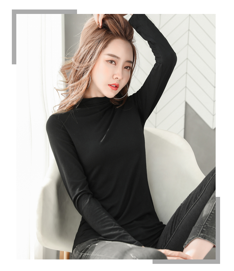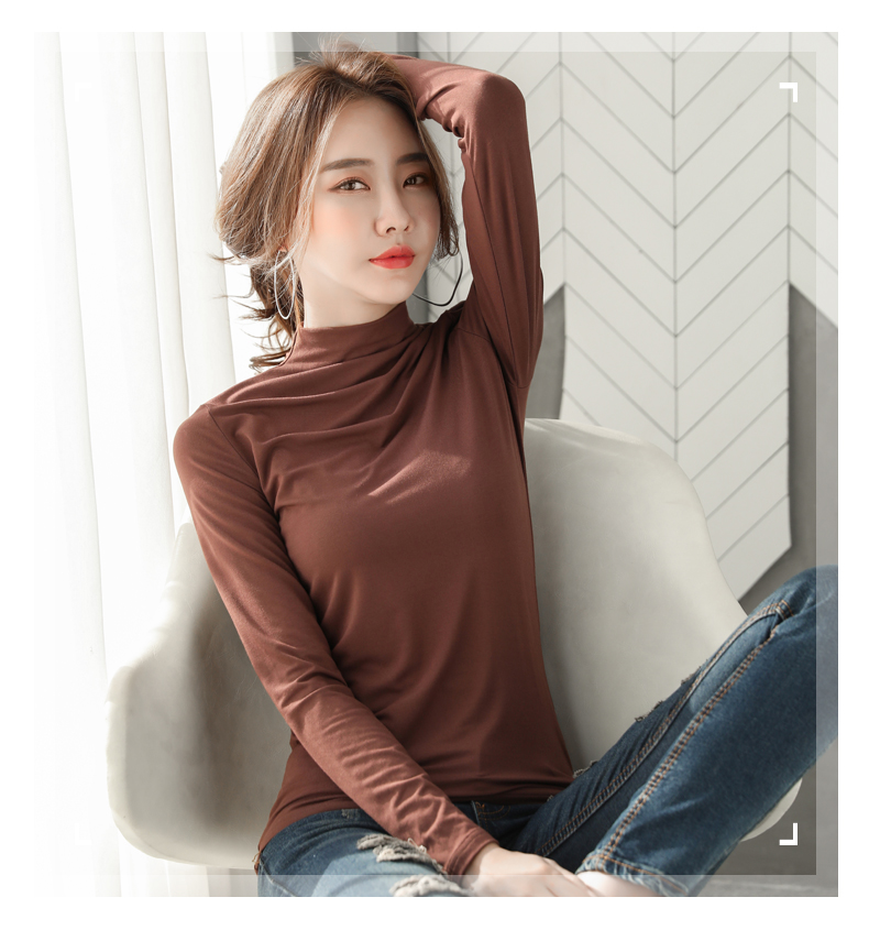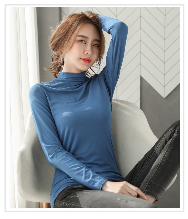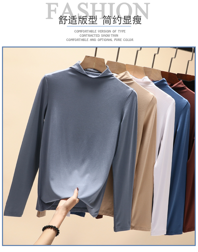 莫代尔打底衫女半高领2020新款洋气上衣春秋修身长袖t恤白色内搭