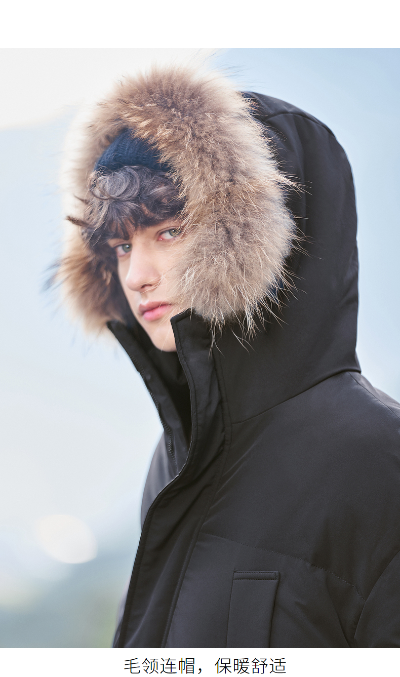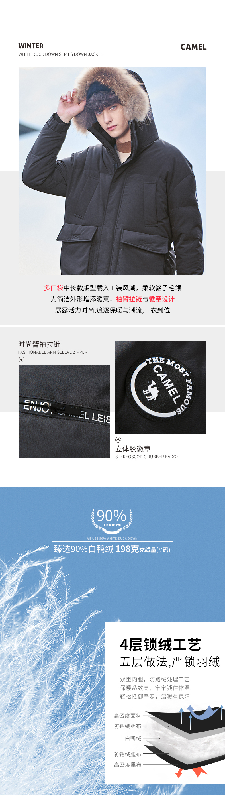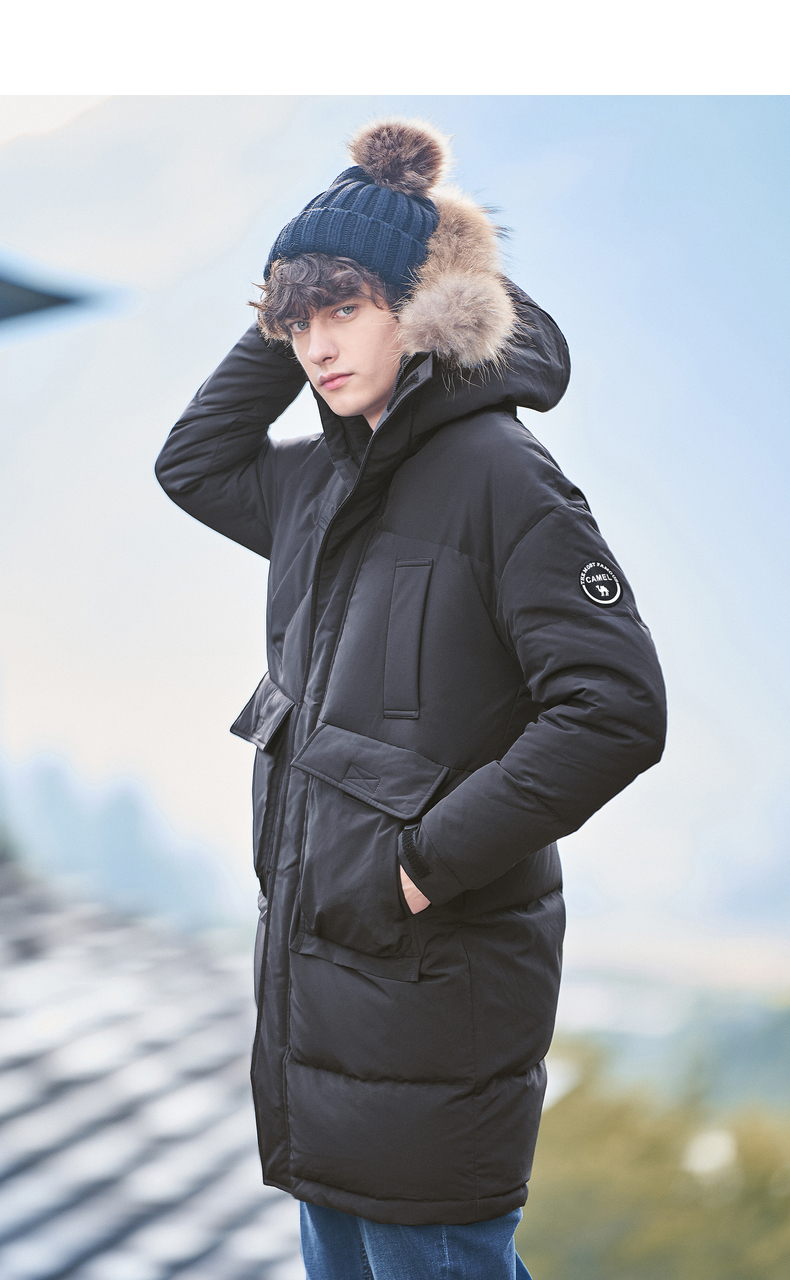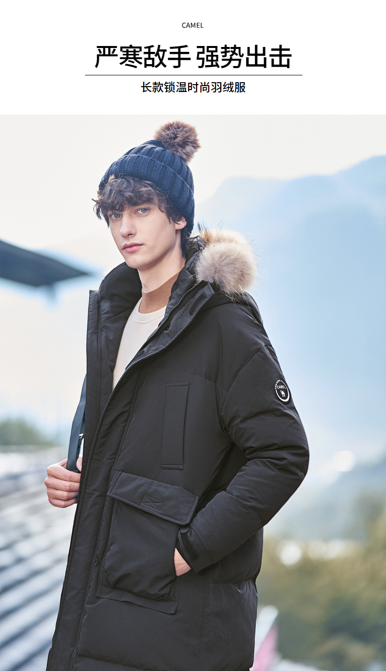 骆驼男装超厚实防风防寒保暖羽绒服男中长款可拆卸毛领帽2019新款