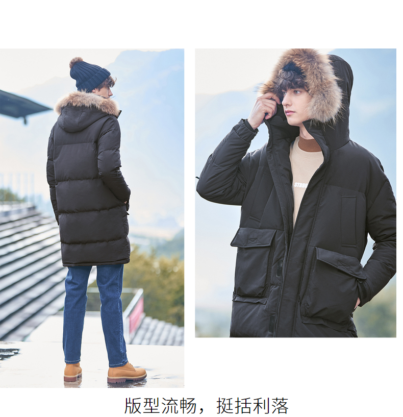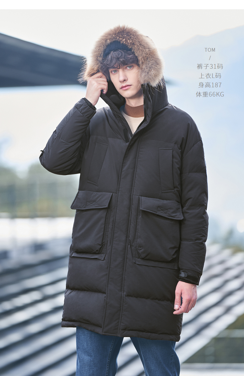 90%白鸭绒,高密度防风面料,多口袋版型,长款锁温,百搭时尚,舒适保暖,赶紧抢购吧