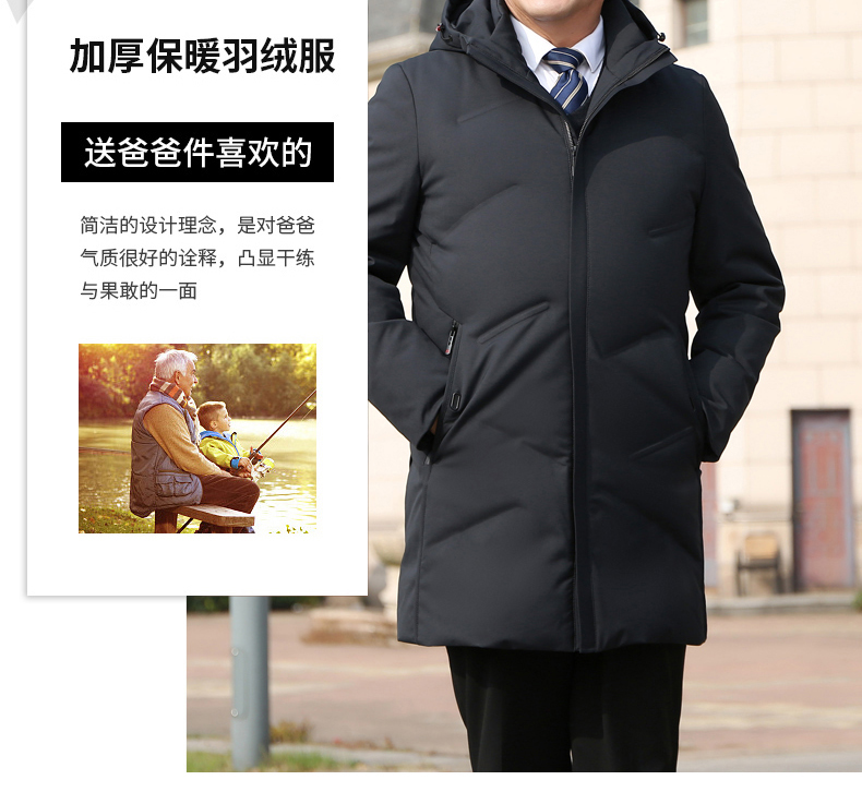 雅鹿中老年羽绒服男中长款父亲装加厚男士老年人爸爸装冬装外套Y