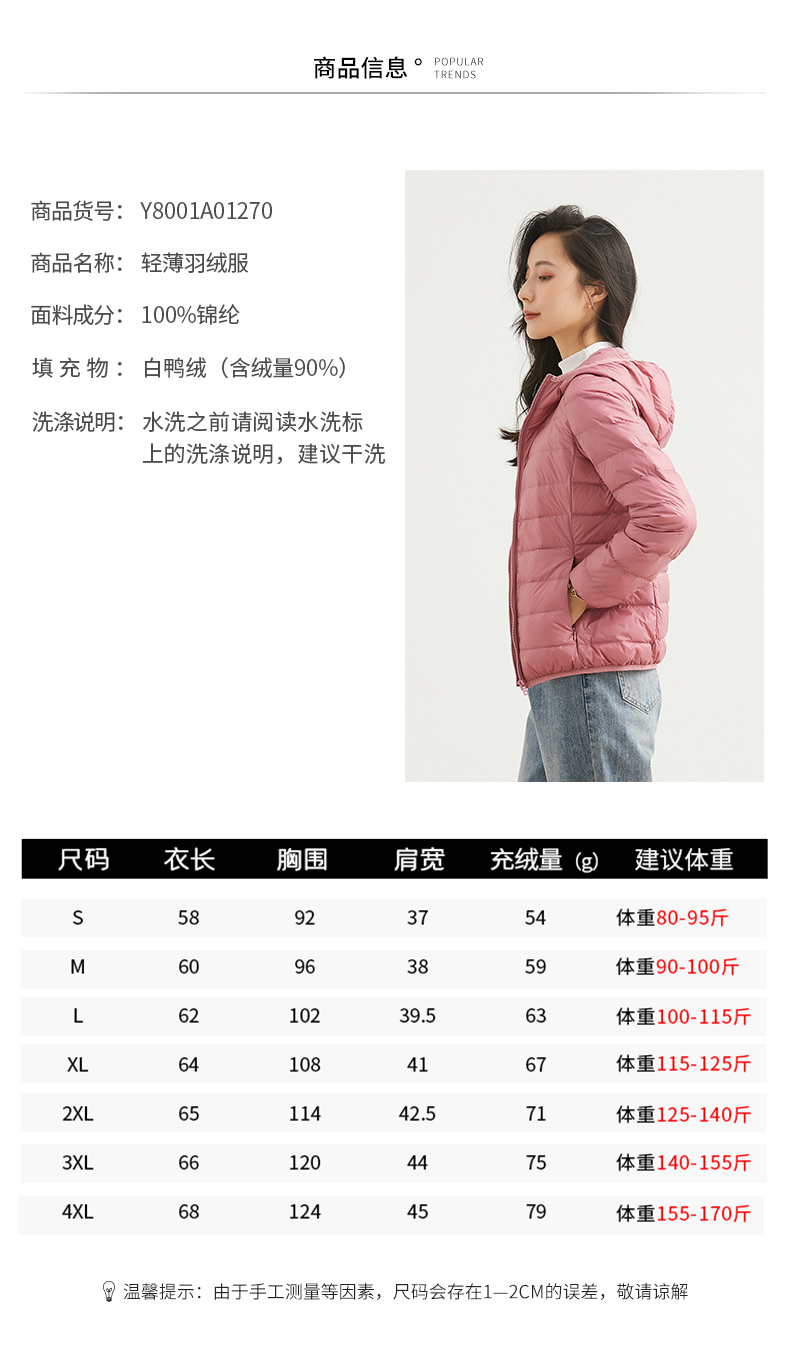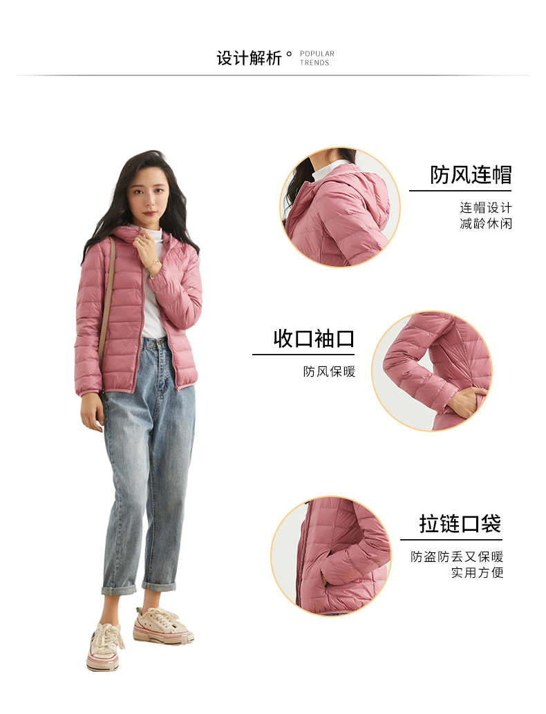雅鹿轻薄羽绒服女短款2019新款轻便超薄款时尚连帽女士鸭绒外套冬
