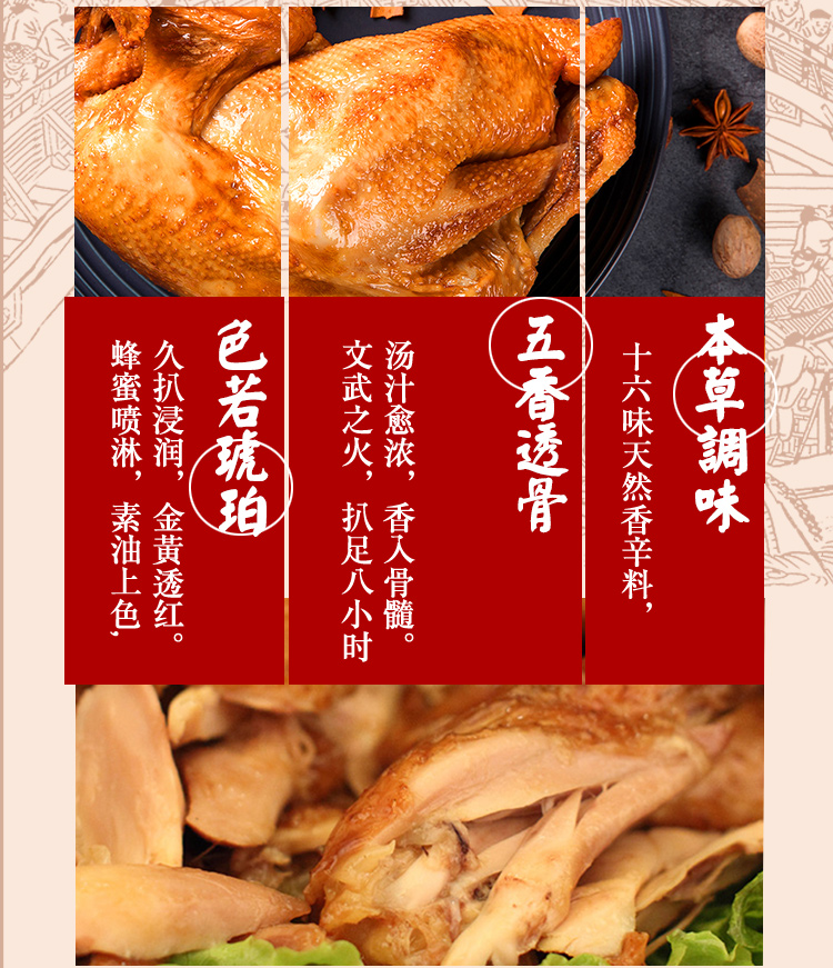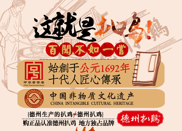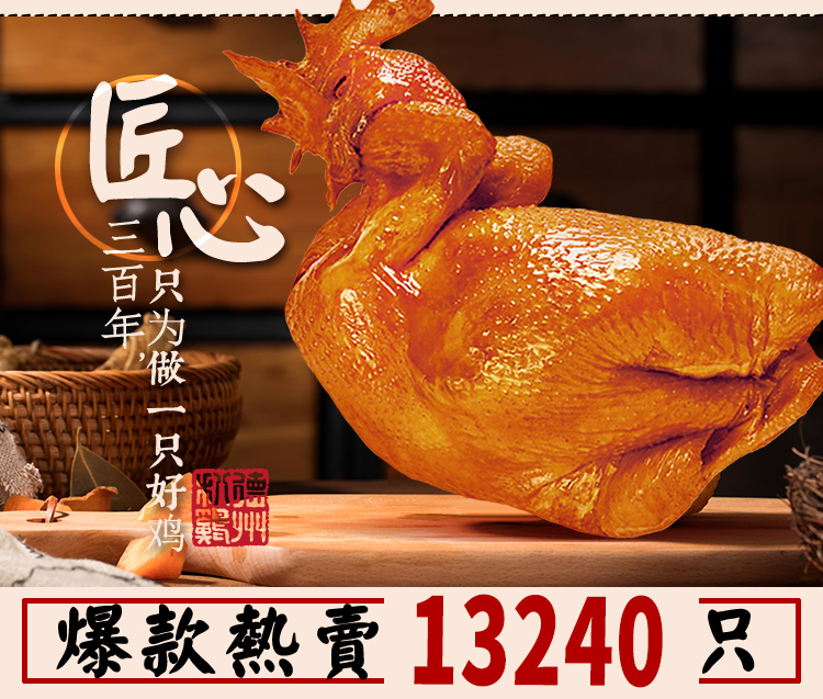 德州正宗华北柴鸡,始创于公元1692年,非物质文化遗产,十代人匠心传承,蜂蜜喷淋,素油上色,久扒浸润,黄金透红,文武之火扒足八小时,汤汁愈浓,香入骨髓!!【赠运费险】