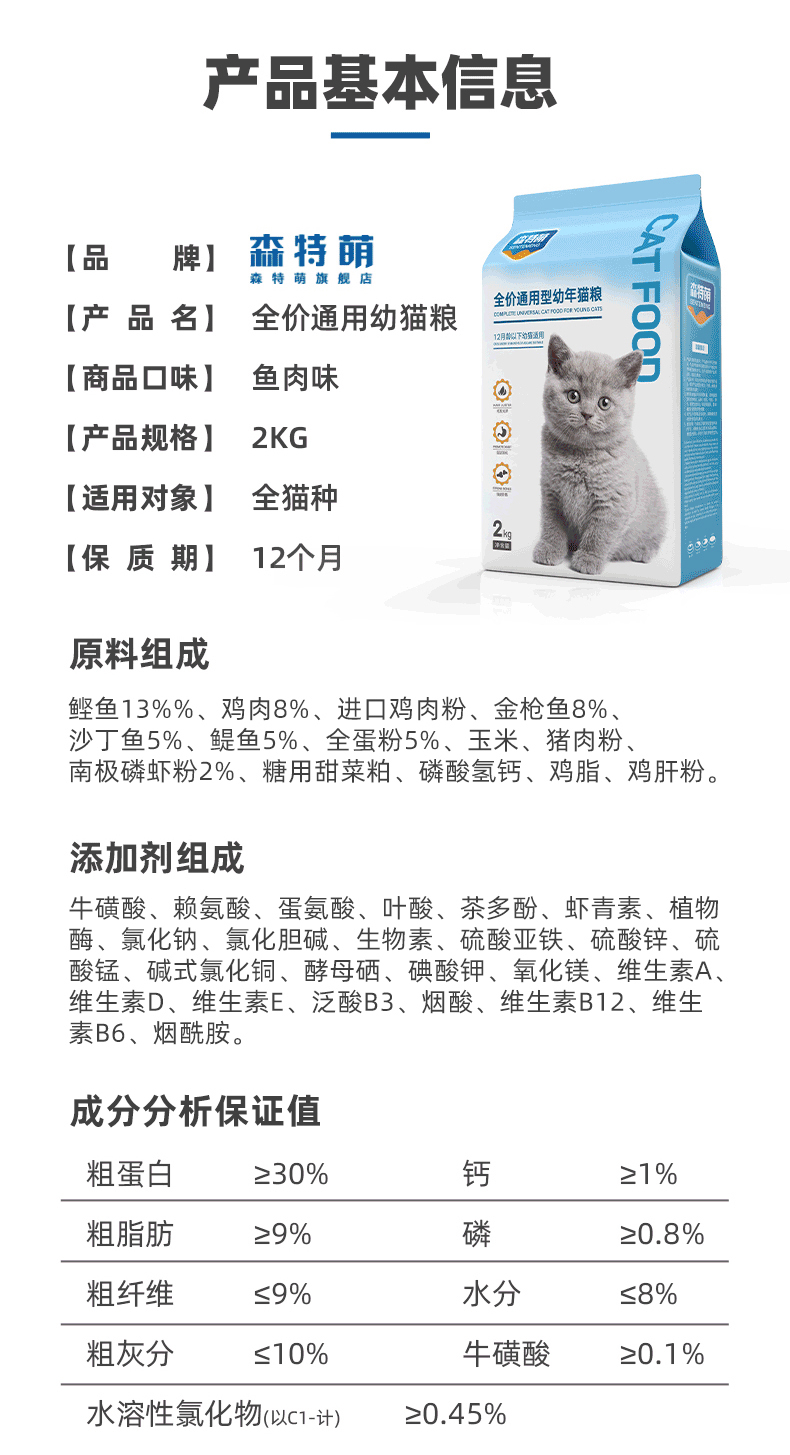 森特萌猫粮增肥发腮幼猫猫粮奶糕天然粮1-4-12月英短蓝猫专用猫粮