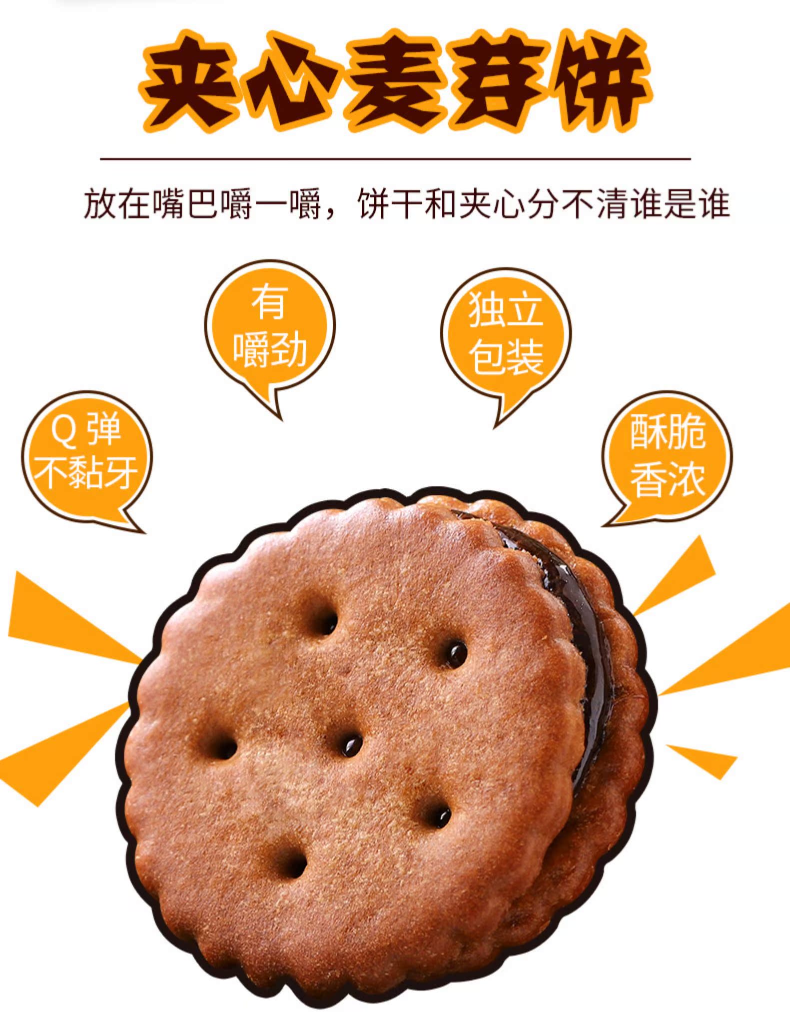 【拍3件!立减券后10.8元到手60袋,贼划算!】精心选材,拔丝夹心,酥脆有嚼劲,口味都很美味,健康营养的麦芽饼干,酥脆口感带着软软的夹心,甜而不腻,补充能量,保证吃过1次就上瘾!!【赠运费险】