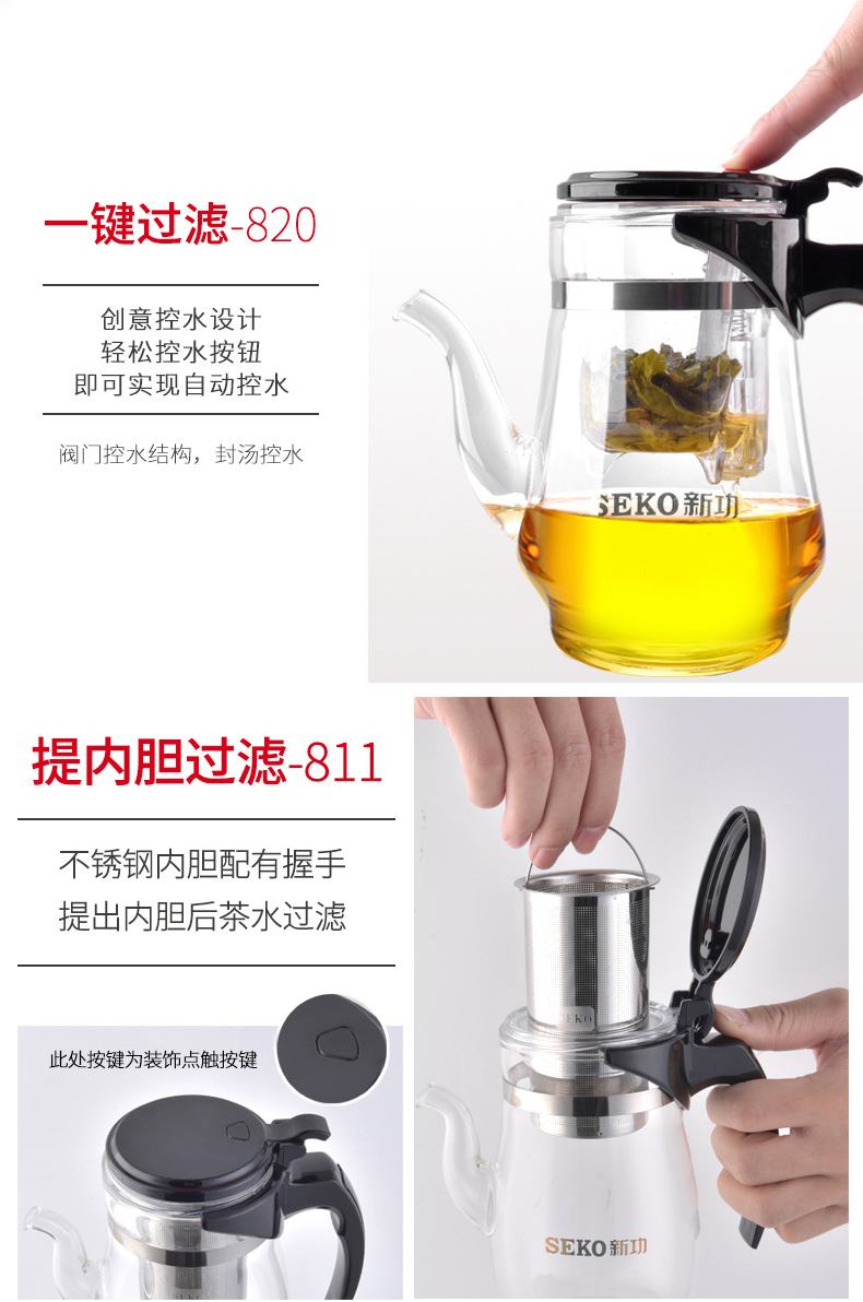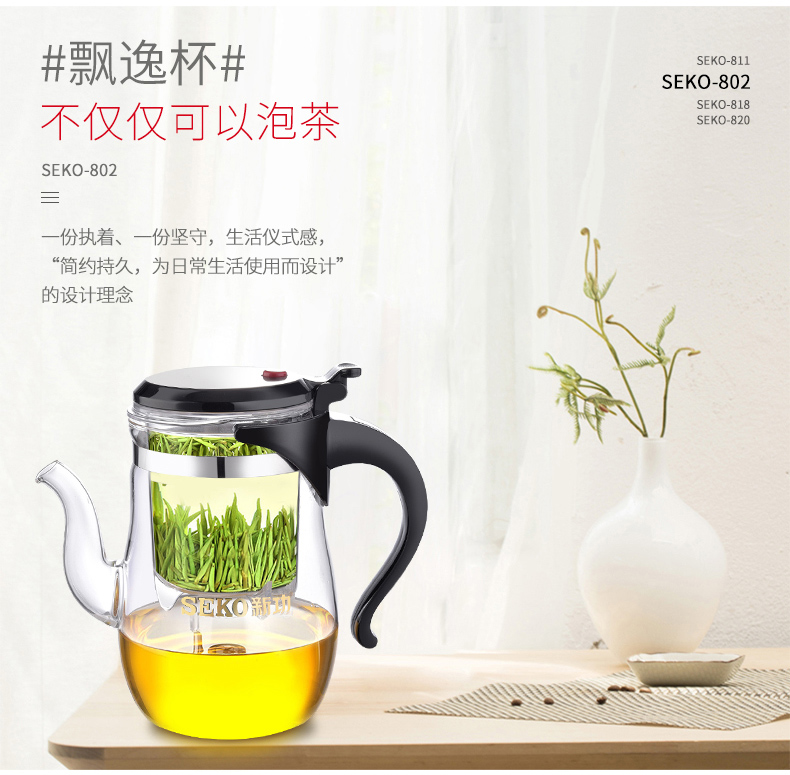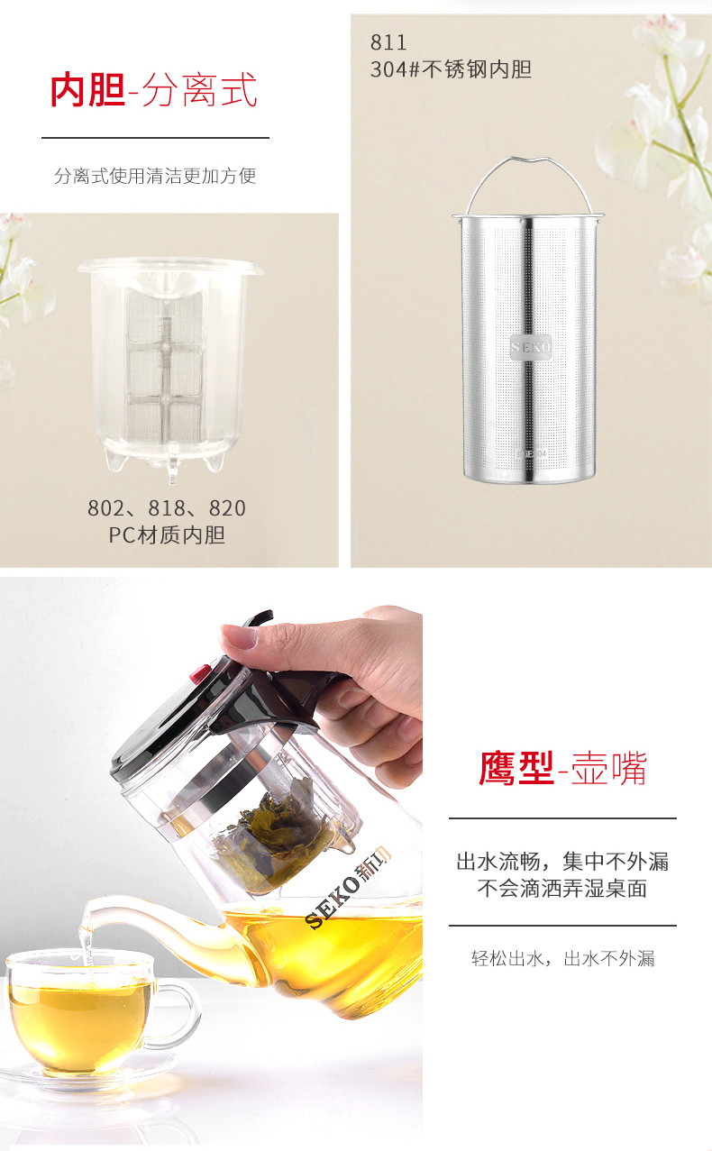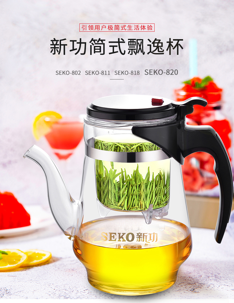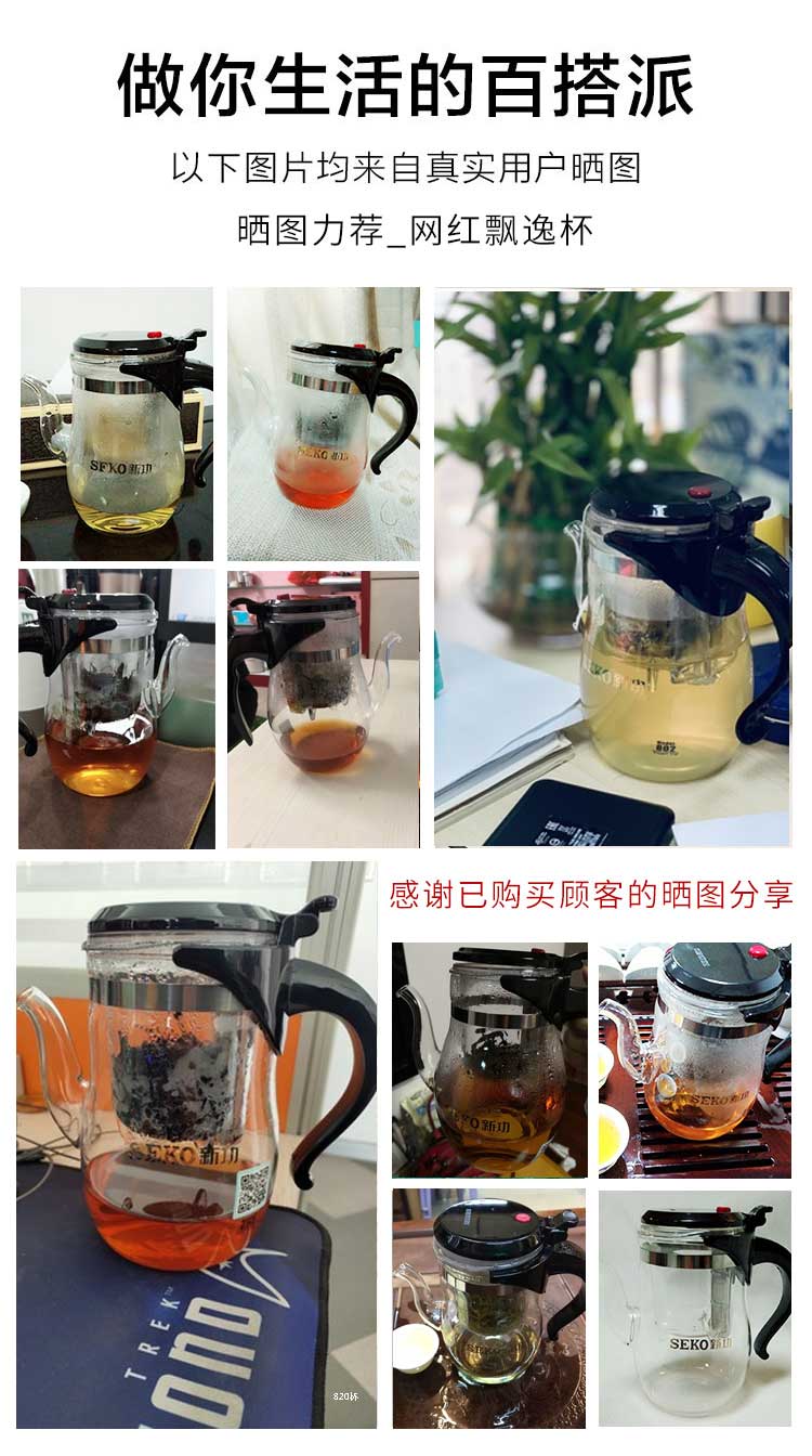 新功飘逸杯泡茶杯,茶壶过滤,办公室花茶杯,耐高温玻璃冲茶器家用茶具,耐热高硼硅,304食品接触级不锈钢,健康安全
