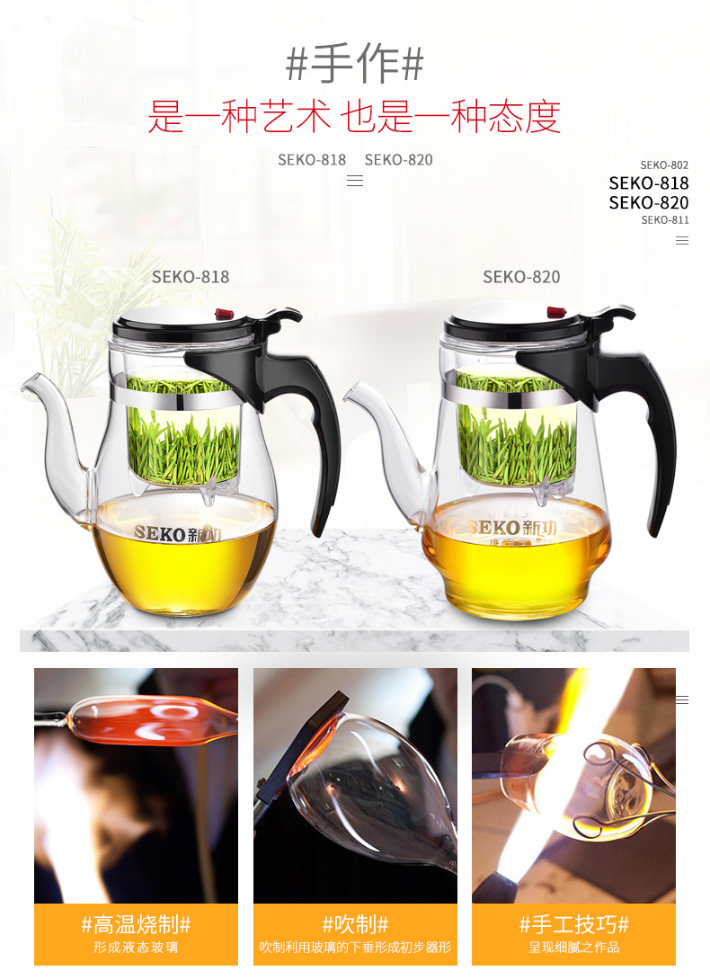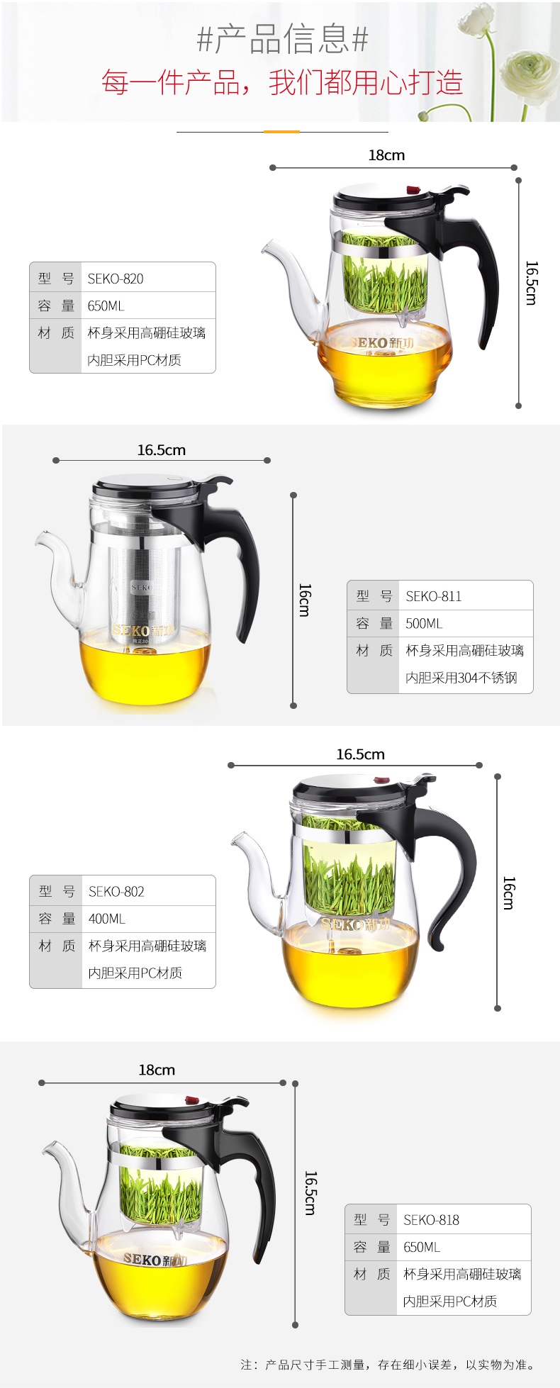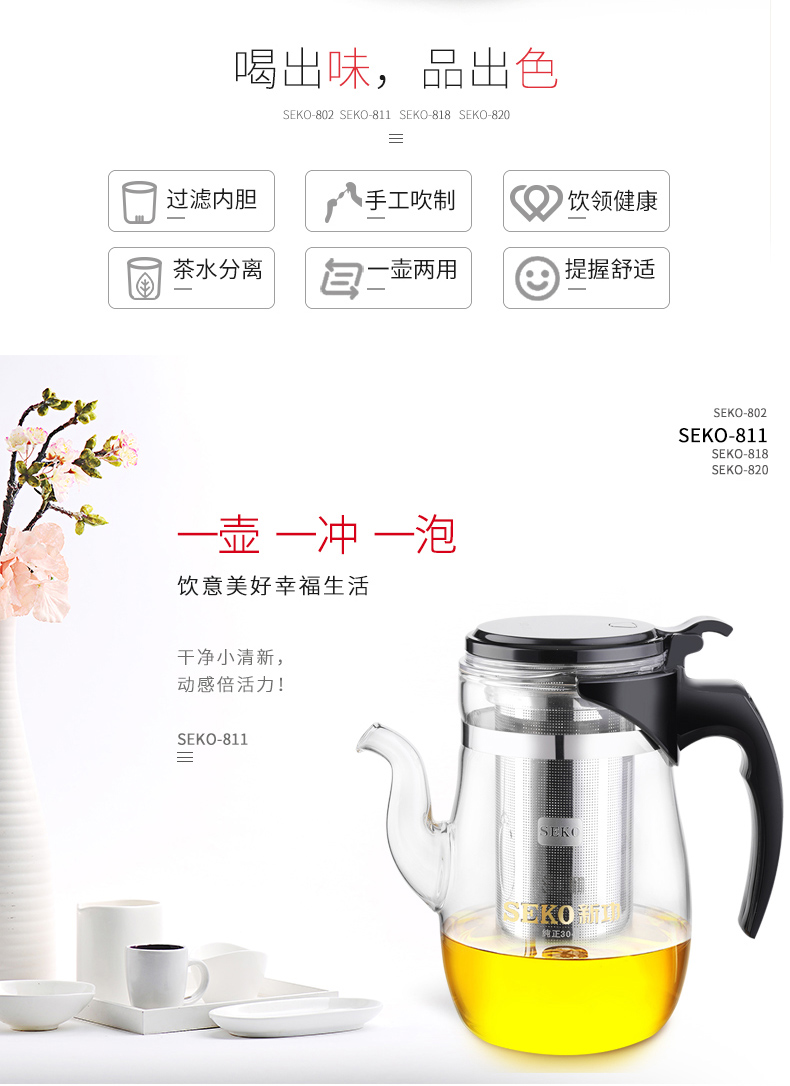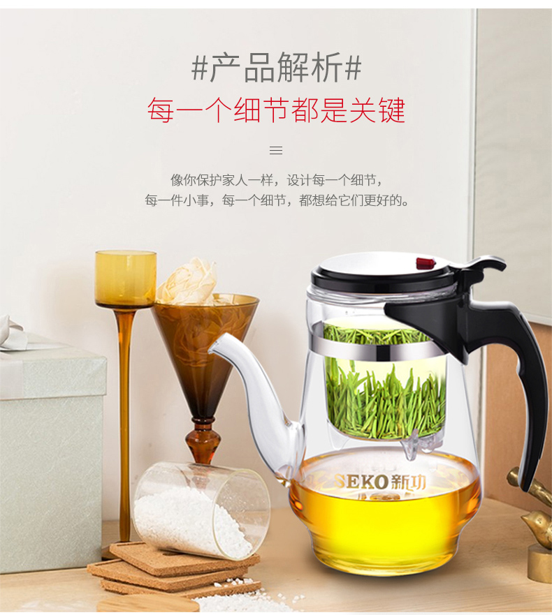 新功飘逸杯泡茶杯,茶壶过滤,办公室花茶杯,耐高温玻璃冲茶器家用茶具,耐热高硼硅,304食品接触级不锈钢,健康安全