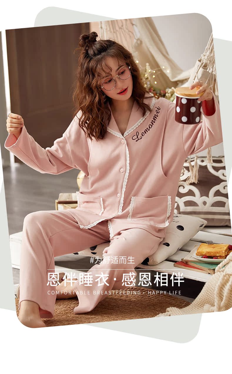 秋冬季纯棉月子服薄款长袖春秋纯棉孕妇睡衣产妇喂奶衣产后哺乳衣