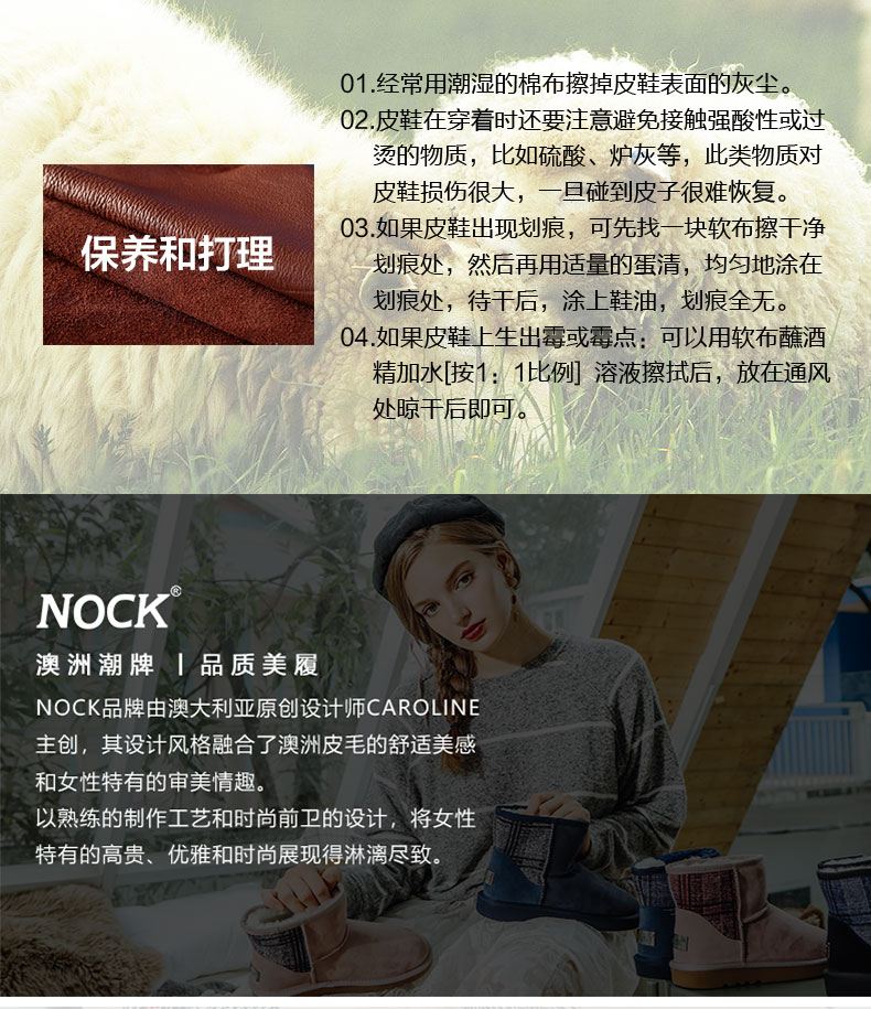 NOCK澳洲豆豆鞋女真猪皮加绒皮毛一体平底浅口孕妇毛毛鞋棉单瓢鞋