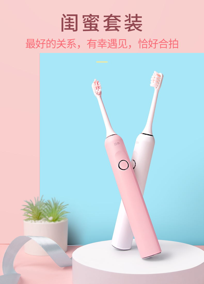 白羽电动牙刷学生党 女生情侣套装自动牙刷洗脸仪张嘉倪推荐